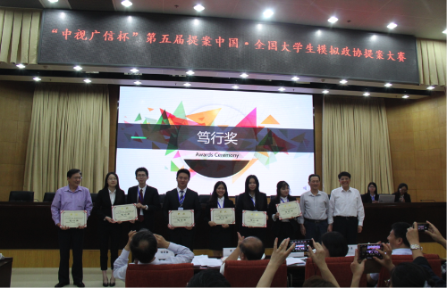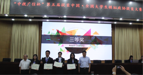 经过客观题、深入答辩和提案审议三个环节的比赛,评委们综合评价了代表队实地调研的深度与提案撰写的合理性、可行性,beat365官方网站《关于规范公共场所双语标识、推进国际化都市建设基础性工作的提案》、北京工业大学《关于建立北京市政府公开信息查询集中索引平台系统的建议》、广东外语外贸大学《关于完善城市规划与交通治理,提升城市对互联网自行车包容度的建议》、首都经济贸易大学《关于改善全国异地就医问题的建议》、中国政法大学《关于提高外来在京务工人员子女教育质量的提案》、中央财经大学《关于积极发挥北京市社区卫生机构在“医养结合”养老模式中作用的提案》荣获“笃行”奖;经过预、决赛各个环节的比拼,山东青年政治学院荣获一等奖;首都经济贸易大学、广东外语外贸大学、复旦大学获得二等奖;中央财经大学、北京工业大学、云南师范大学、北京外国语大学获得三等奖。