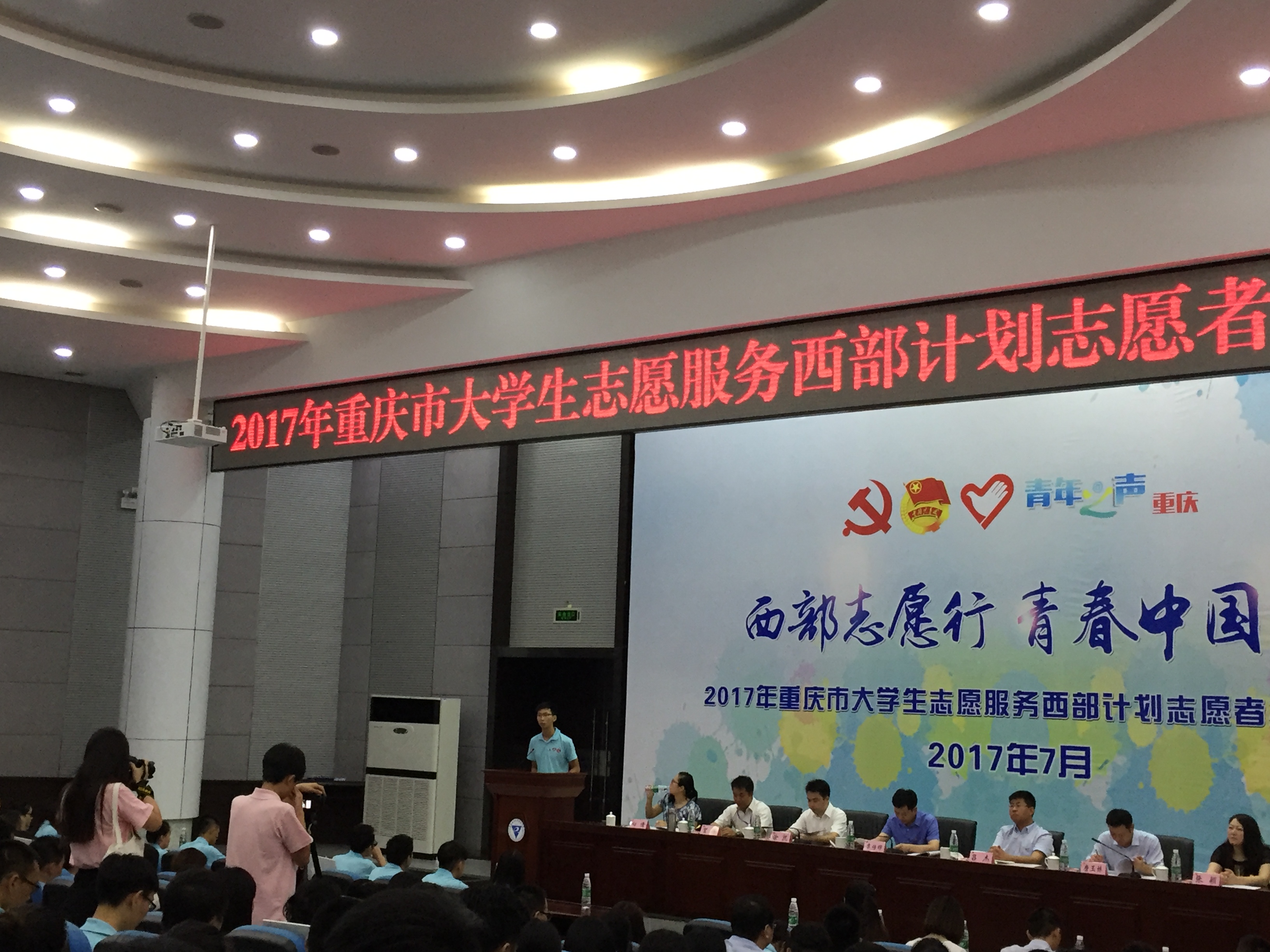 2017年7月25日,我校首批研究生支教团成员平理达、黎晓言、王祎然抵达重庆参加“2017年重庆市大学生西部计划志愿服务培训班”。本次培训由重庆市大学生志愿服务西部计划项目办举办,共有约1300名西部计划志愿者参加。我校平理达同学在开班仪式上代表全体赴渝志愿者发言。