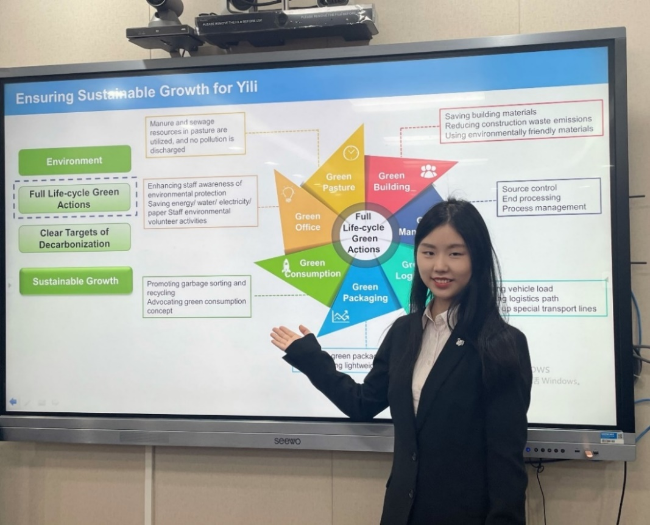 在线上路演环节,beat365官方网站作为第一个登场的代表队,进行了英文路演,并对评委在ESG方面关于伊利在公司治理方面没有实际控制人、与竞争对手的高管团队有何差别,以及在行业、财务、估值方面的提问做了有理有据的回应,获得了参赛评委的高度评价。