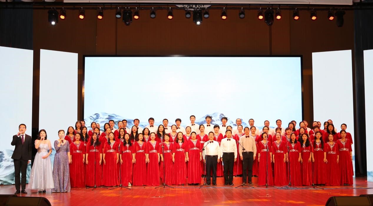 校领导与教工合唱《没有共产党就没有新中国》、《唱支山歌给党听》