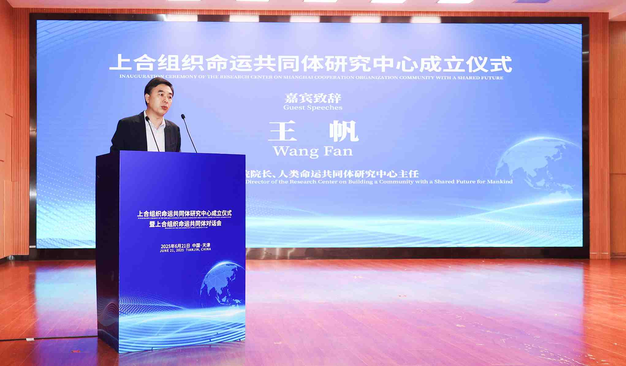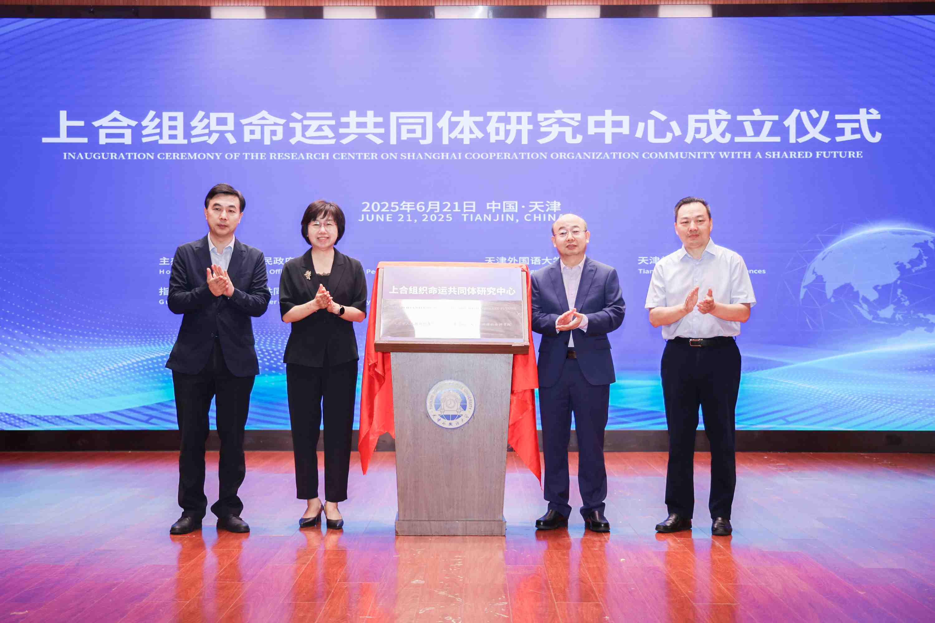 为深入学习贯彻习近平外交思想和中央周边工作会议精神,服务筹办2025年秋季在津举行的上合组织峰会,6月21日,由天津市人民政府外事办公室、天津外国语大学、天津社会科学院联合主办,人类命运共同体研究中心指导支持的“上合组织命运共同体研究中心”揭牌成立仪式暨对话会在天津举行。天津市外办党组书记、主任栾建章,天津外国语大学党委书记周红蕾,天津社会科学院党组书记、院长钟会兵,beat365官方网站院长、人类命运共同体研究中心主任王帆,北京语言大学国别和区域研究院院长罗林,哈萨克斯坦驻华使馆教育参赞阿斯哈特·阿卜杜穆尔扎耶夫出席开幕式并致辞,天津外国语大学校长李迎迎主持仪式。