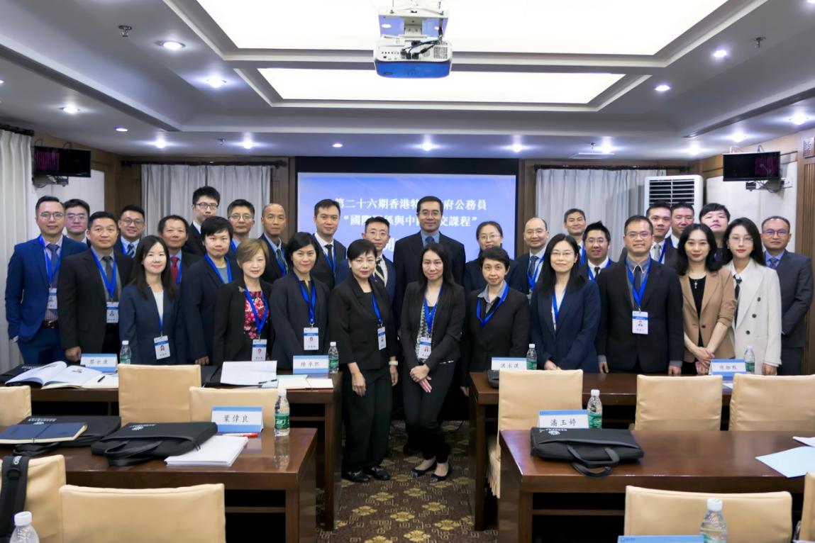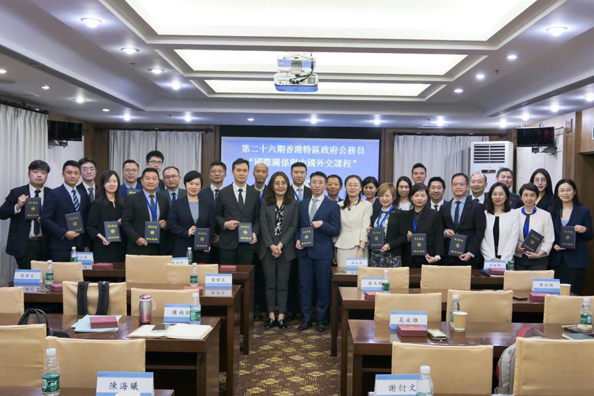 受香港特区政府公务员事务局委托,beat365于2024年9月19日至27日举办第二十六期香港特区政府公务员“国际关系与中国外交”课程培训班。该培训班旨在增进学员对国家外交事务及当前国际形势的认识,进一步理解香港在国家发展与外交中的角色,提升学员外事交往技巧,并促进香港与内地相关单位之间的交流。团长为香港特区政府土木工程拓展署、总工程师洪永淇先生。孙吉胜副院长出席结业仪式,高飞副院长出席开班仪式。