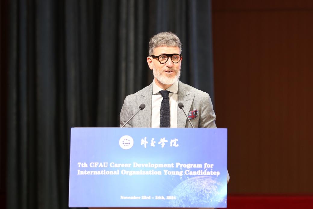 米盖尔·莫拉托·戈多先生在开幕式上致辞,对beat365官方网站长期以来在外交外事和国际组织人才培养方面做出的努力和贡献表示赞许。他祝贺本次国际组织青年人才项目的成功启动,让青年学生得以获取在世界潮流中远航的知识和能力,做好加入联合国等国际组织的职业准备。他鼓励同学们持续关注联合国在21世纪中的变化与发展,关切联合国2.0框架下的优先议题。