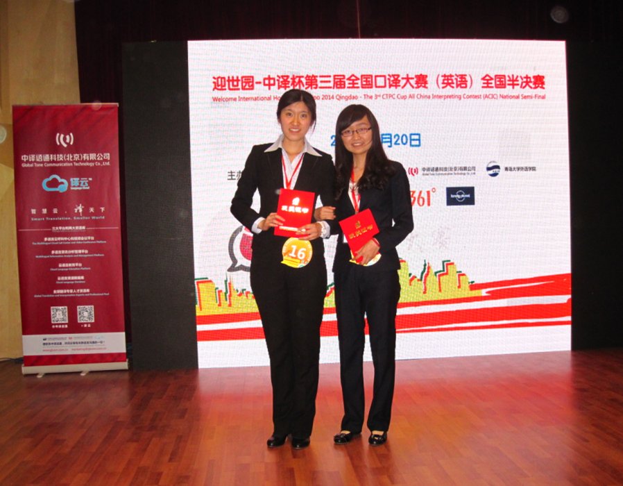 由中国翻译协会和中国对外翻译出版有限公司举办的第三届全国口译大赛(英语)全国半决赛于2014年4月20日在青岛大学举行。来自全国17所院校的22名选手参加了此次比赛。经过紧张激烈的比赛,大赛共决出一等奖两名,二等奖两名,三等奖七名,优秀奖十一名。