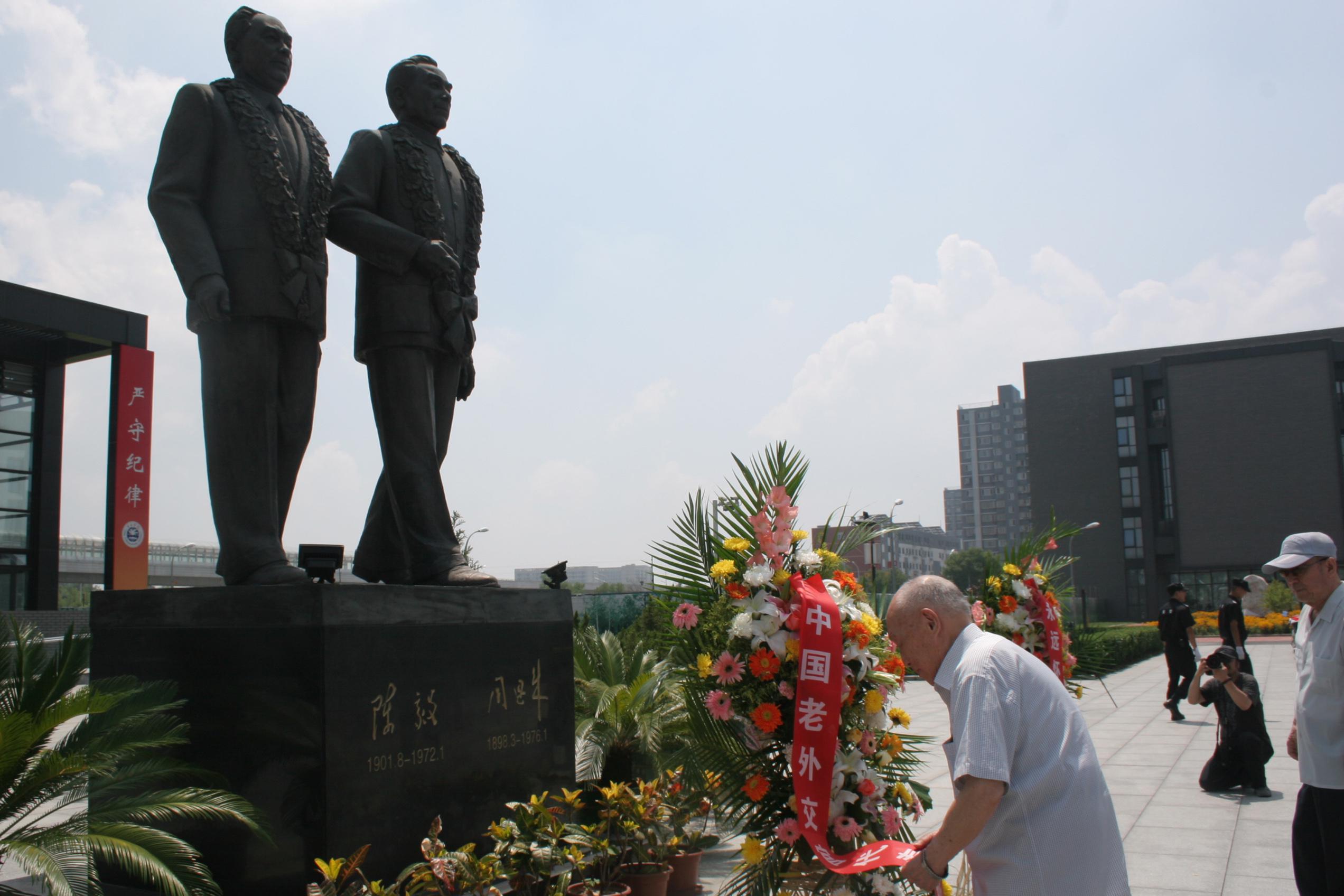 随后,老领导们共同向周恩来、陈毅同志铜像敬献了花篮。