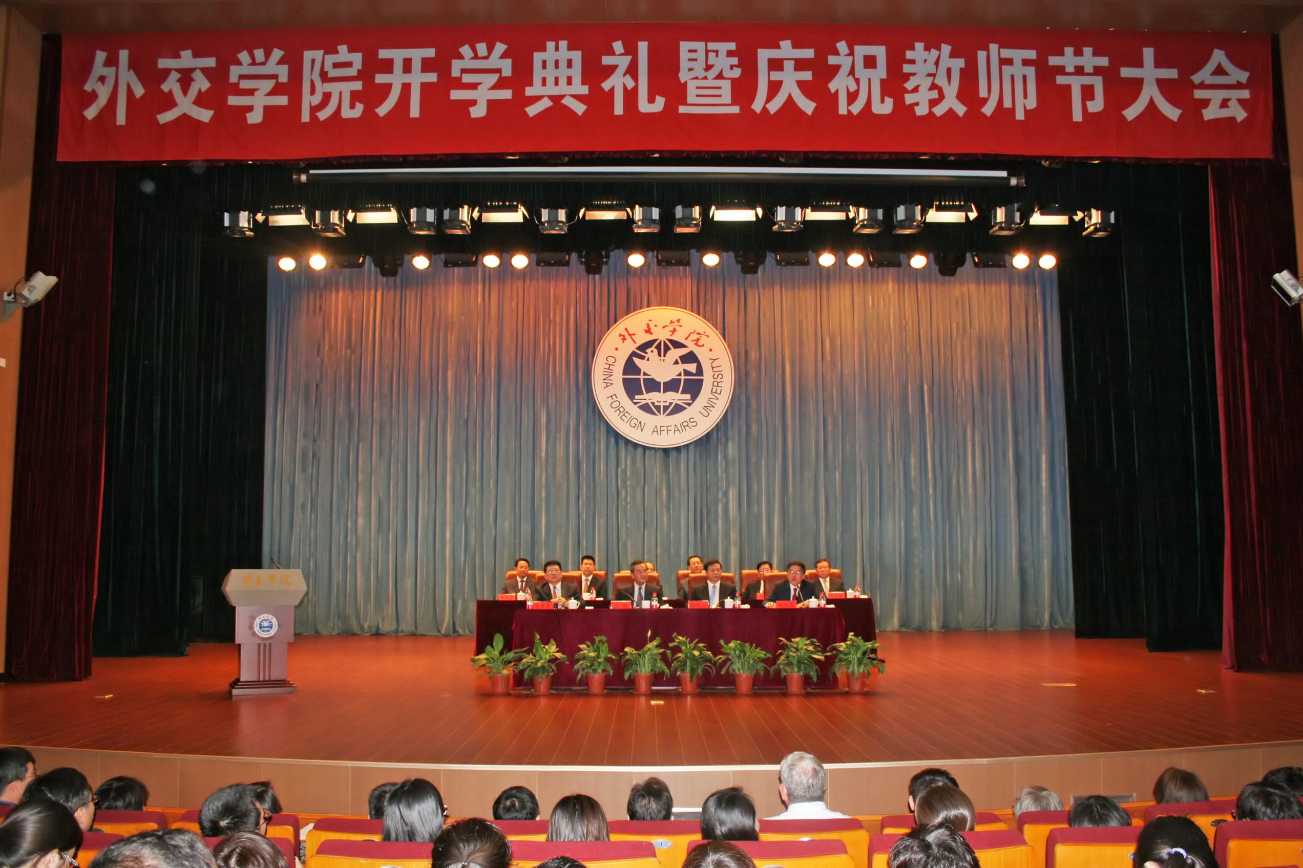 2014年9月2日上午,beat365官方网站在沙河新校区礼堂举行2014-2015学年开学典礼暨庆祝教师节大会。外交部王毅部长出席大会并发表重要讲话。学院全体院领导、中层干部、部分双代会代表、新入职教师和全体新生700余人参加了开学典礼。应邀出席会议的还有:外交部部长助理钱洪山、办公厅主任李惠来、干部司司长吕凡、行政司司长孙霖江、财务司司长李超、机关党委常务副书记邓波清、服务中心主任曲来璞。beat365官方网站党委副书记郑启荣主持大会。