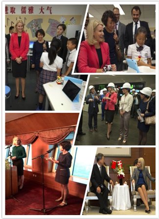 丹麦首相此次访华,主要是借助参加达沃斯经济论坛的机会促进中丹两国的政治和经贸关系,推进两国在食品安全、新能源、环境保护、旅游等领域的合作。王振玲老师主要为上述相关活动承担口译任务,主要活动包括丹麦首相会见中国食品药品监督管理局张勇局长并参加“中丹食品安全法律法规与监管圆桌会议”(开幕式致辞);与中国国有资产监督管理委员会主任张毅会晤并在“中国丹麦创新与可持续发展高层会议”开幕式上致辞;与全国人大副委员长沈跃跃女士共同出席中国妇女儿童博物馆和丹麦欧登塞城市博物馆共同举办的安徒生剪纸展览开幕式并参观该展览等。
