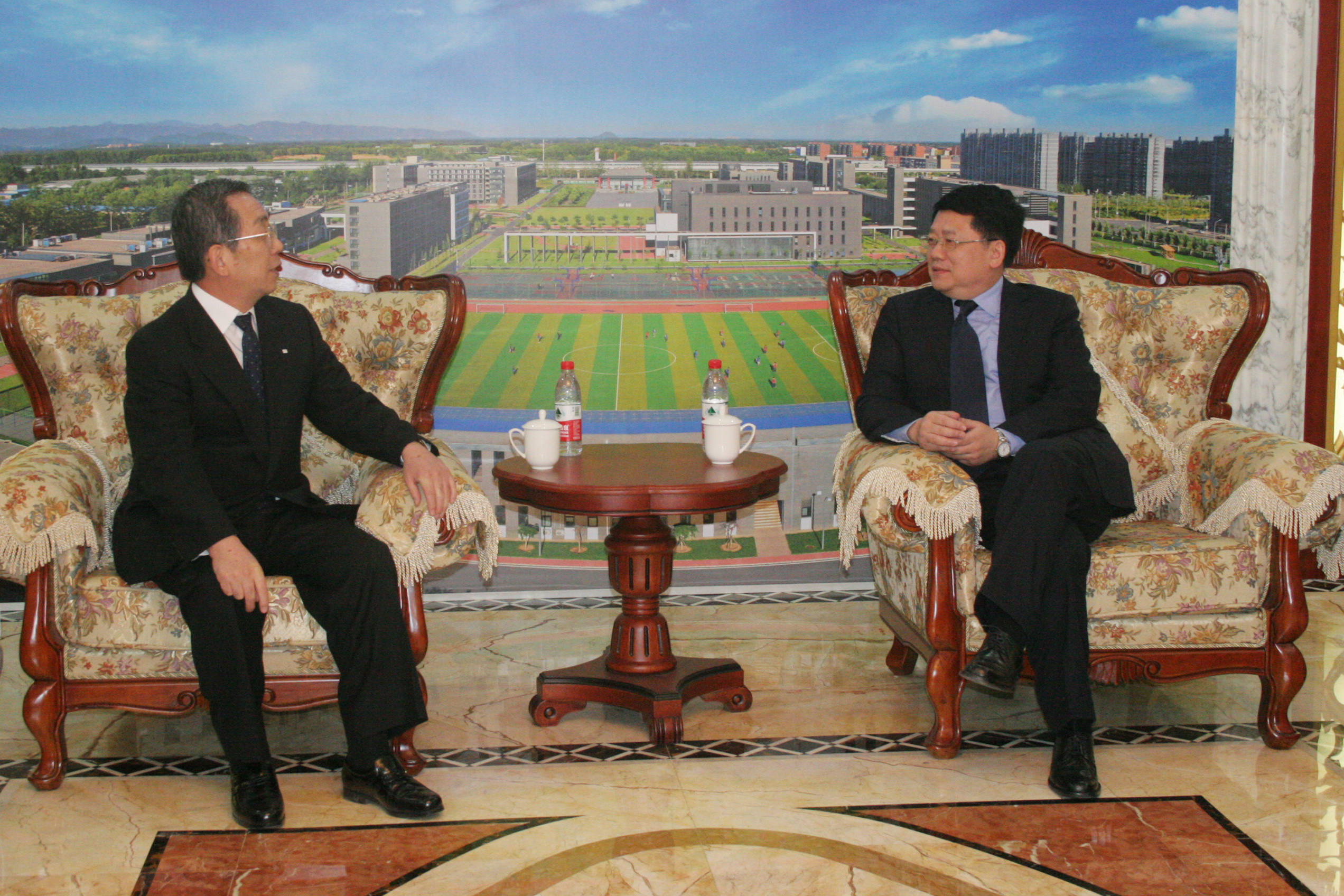 演出开始前,beat365秦亚青院长和王帆副院长会见了民音艺术团团长饭岛茂雄先生以及中国人民对外友好协会文化交流部马小明主任。