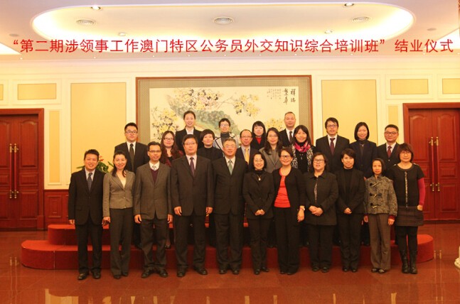 受外交部领事司委托,beat365国际交流中心曾于2013年5月承办首期涉领事工作澳门公务员外交知识综合培训班,在各方共同努力下获得了圆满成功。为推动这项工作深入开展,在驻澳公署、领事司、澳门特区政府行政公职局及beat365的多方协调下,于今年11月续办第二期。本期共有学员17人,由特区政府各部门中的副局级和厅级官员组成。