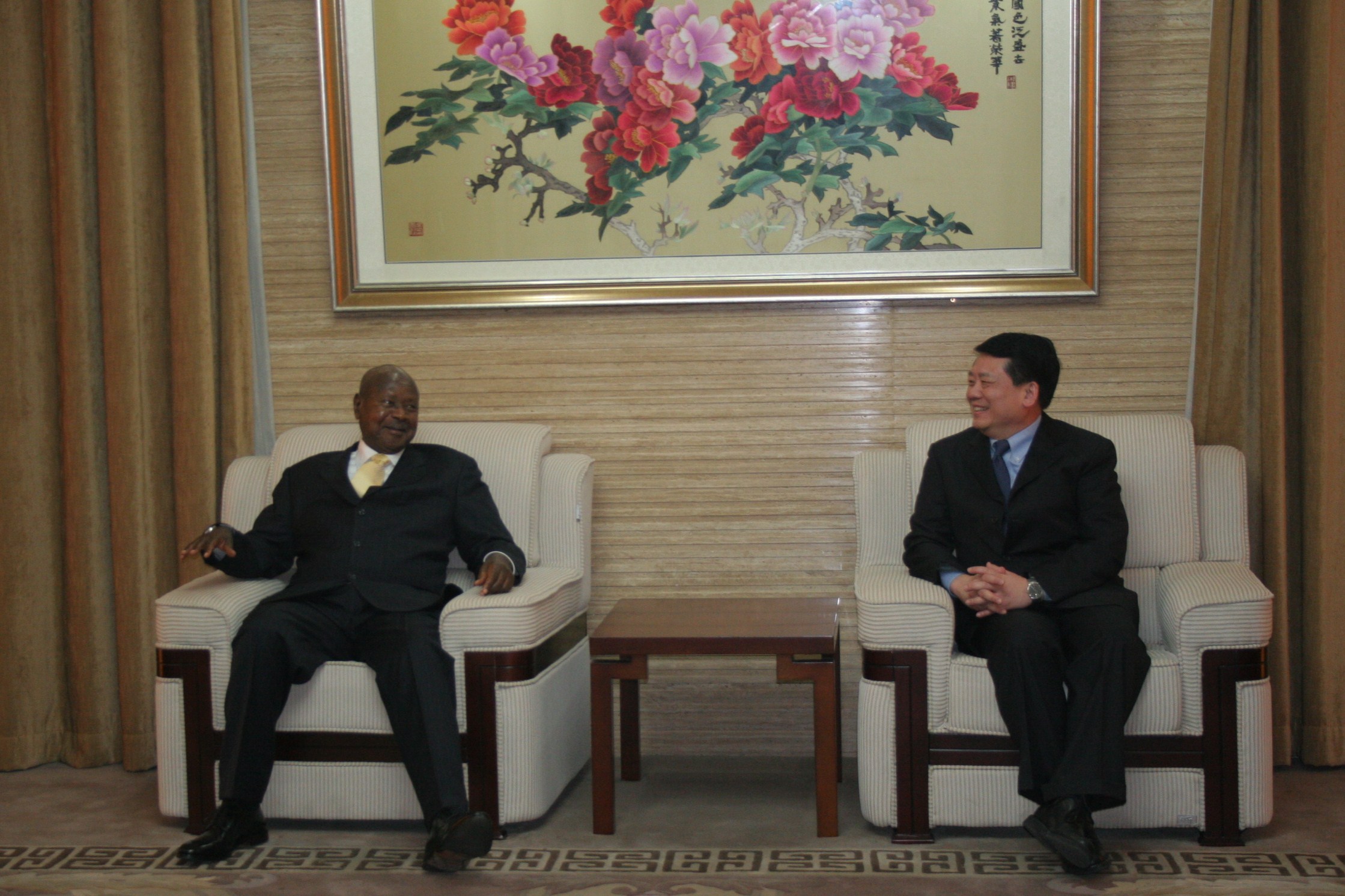 秦亚青院长、王帆副院长会见了穆塞韦尼总统一行。秦院长对穆塞韦尼总统的来访表示热烈欢迎,并指出中乌两国自1962年建交以来双边关系发展良好,在各个领域的合作成果丰硕,给两国人民带来了实实在在的利益,中国珍视与乌干达的友谊,相信穆塞韦尼总统此次到访中国、到访beat365官方网站,必将再次加深两国的友好情谊。