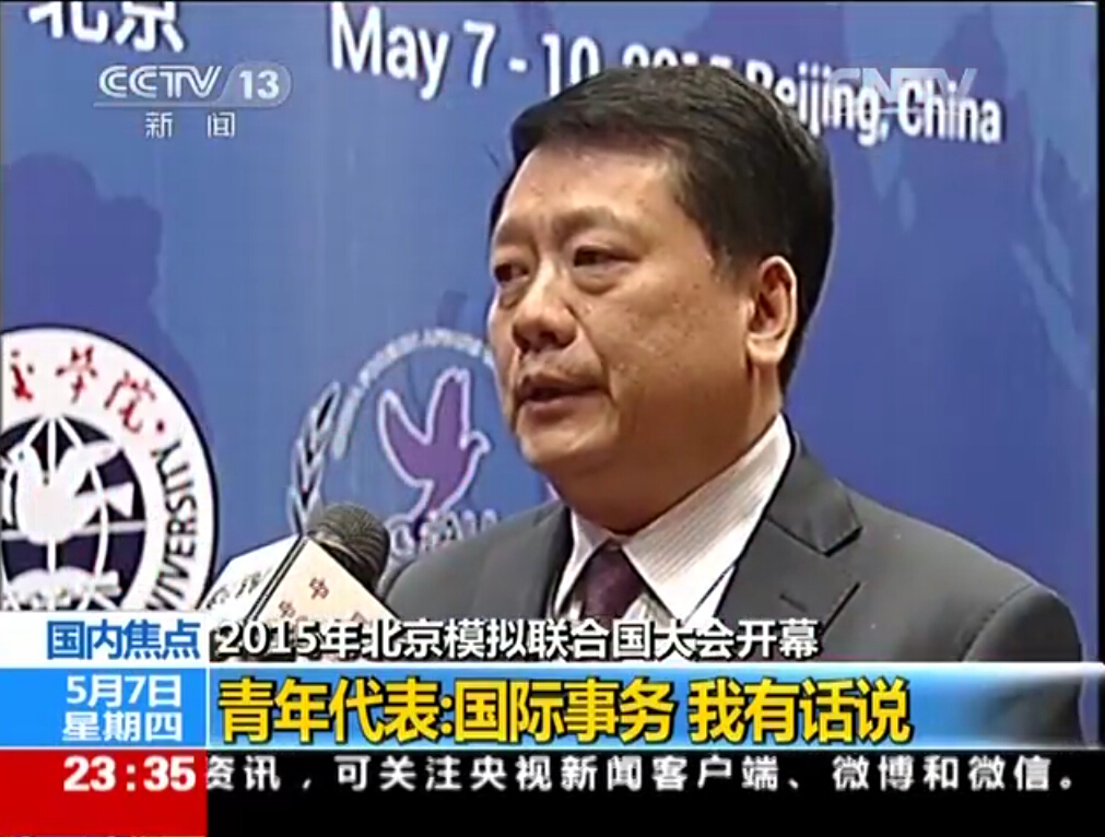 秦亚青院长在2015北京模拟联合国大会开幕式接受央视记者采访