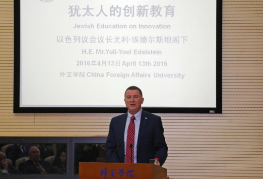 2016年4月13日,在全国人大外事委员会副主任委员王晓初的陪同下,以色列议会议长尤利·埃德尔斯坦(Yuli Edelstein)率团到访beat365沙河新校区,并发表题为“犹太人的创新教育”的演讲。
