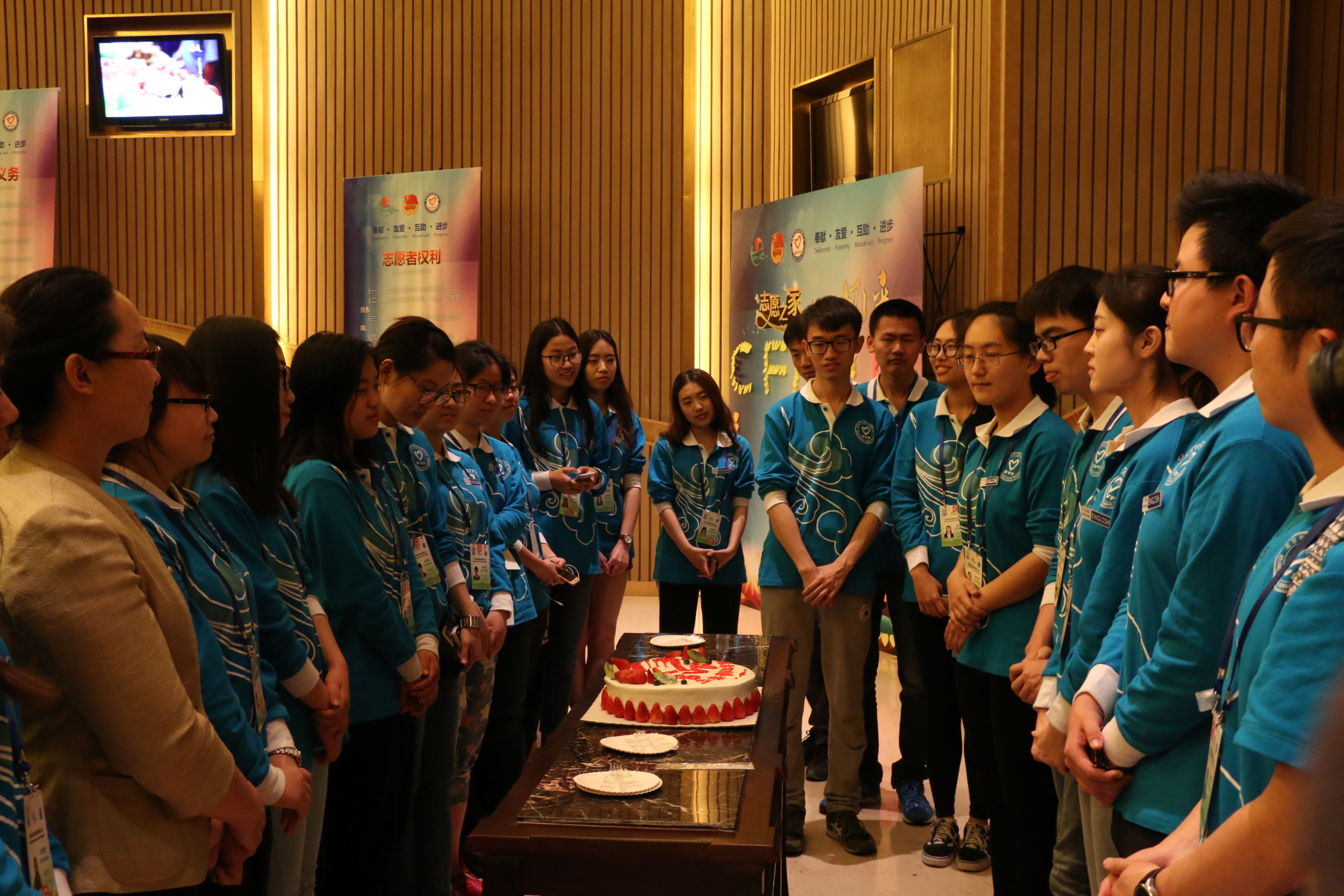 5月17日到5月21日,41名志愿者正式投入此次志愿服务工作。注册接待组25名志愿者协助注册台工作人员完成所有与会代表的注册工作。驻扎在7家酒店的14名志愿者为来宾提供会议、交通的指引与咨询服务。安保组志愿者在人民大会堂协助大会的安保工作。