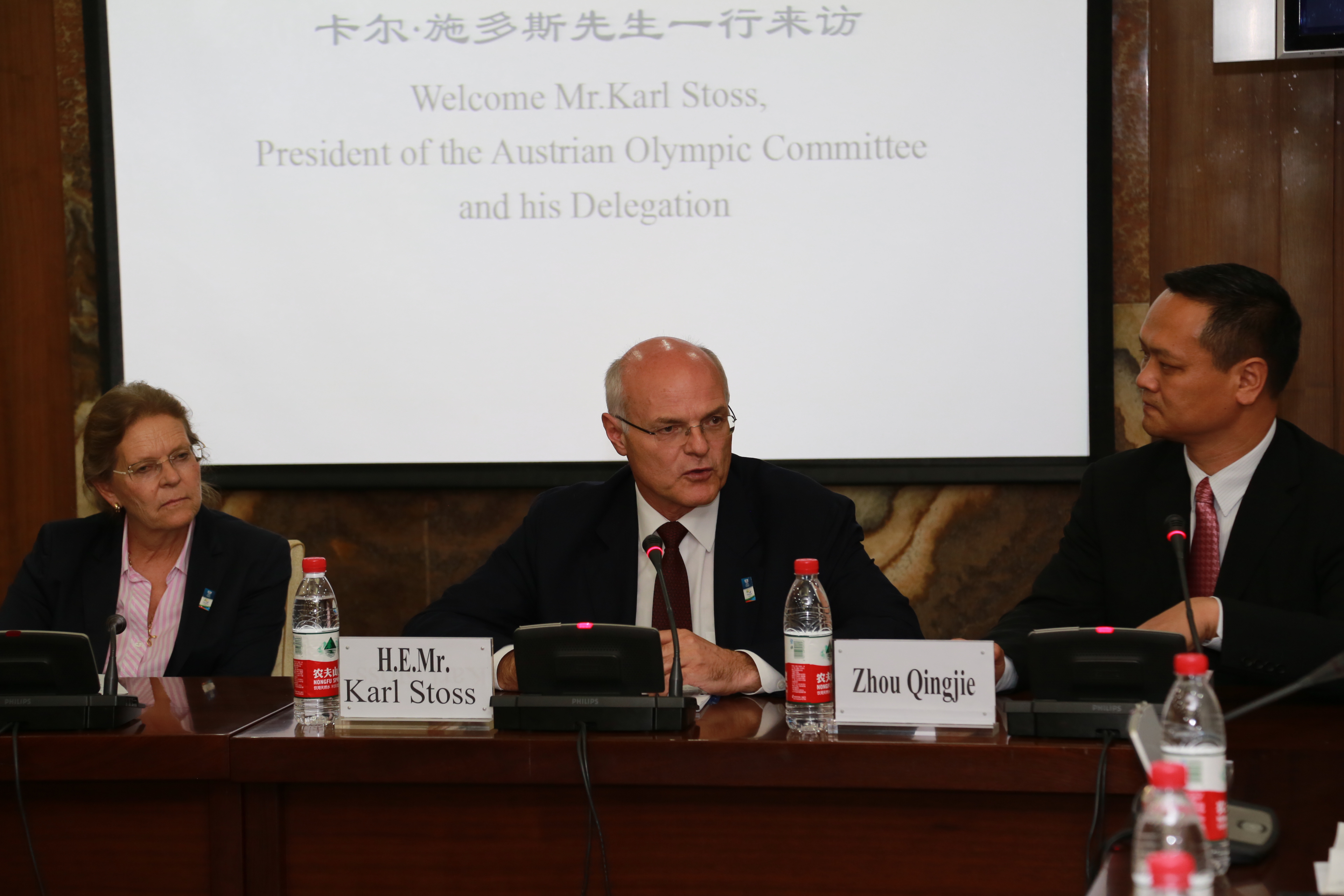 2016年74日,奥地利国家奥委会主席卡尔施多斯(Mr. Karl Stoss)、奥地利驻华大使艾琳娜(Mrs. Irene Giner-Reichl)、奥地利国家奥委会国际关系事务负责人(Mr. Alexander Tucek)、Casinos Austrian首席执行官(Mrs. Bettina Glatz-Kremsner)、奥地利驻华使馆随员Mrs. Evelyn Woll-ZhanMr.Felix Wanger一行到访beat365并出席体育外交座谈会等活动。本次活动由体育对外交流研究中心、中国外交理论研究中心及院团委联合举办。