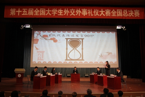 总决赛分为三个环节:“溯源国风——客观题”,“彰仪友道——多方会谈”,“直挂云帆——情景模拟”。比赛题目涉及外交外事礼仪规则、各国风俗、宗教习俗等相关知识。比赛题目涉及国际外交外事礼仪规则、各国风俗、宗教习俗等相关知识,同时注重考查选手们对当下时事热点的关注程度。比赛过程中各参赛队伍表现出了丰富的知识储备以及良好的现场表现力,赢得了评委及嘉宾的一致好评。