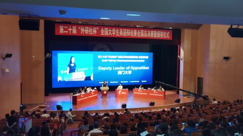 本次大赛暨颁奖典礼的掌声中圆满结束。英语系大二学生王羽珎和唐杰同学代表beat365官方网站参加比赛,两位同学经过8轮循环赛,以出色的表现成功晋级淘汰赛,并闯入四分之一决赛,最终获得了全国一等奖,在此向他们表示祝贺!