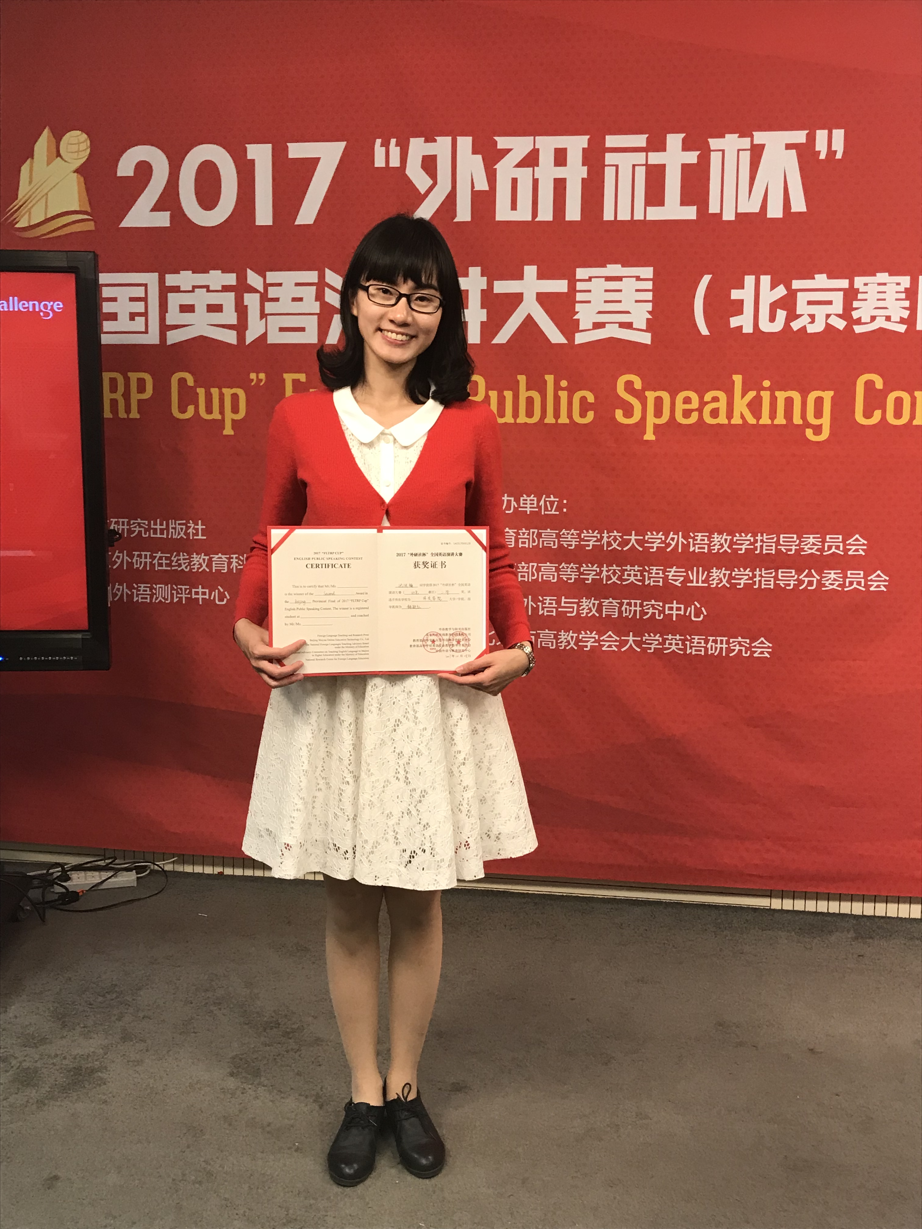 英语系学生荣获2017年“外研社杯”全国英语演讲大赛北京赛区二等奖