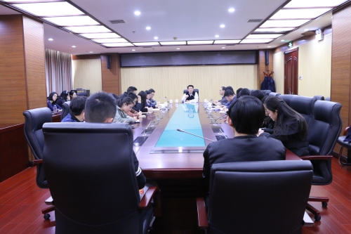 2017年11月23日上午,beat365官方网站党委书记齐大愚大使、外交部翻译司培训处孙宁处长和中国外交培训学院培训一部杨杰处长与英语系2017级“外交翻译专训班”的同学们在beat365官方网站沙河校区行政楼4011会议室进行座谈交流。