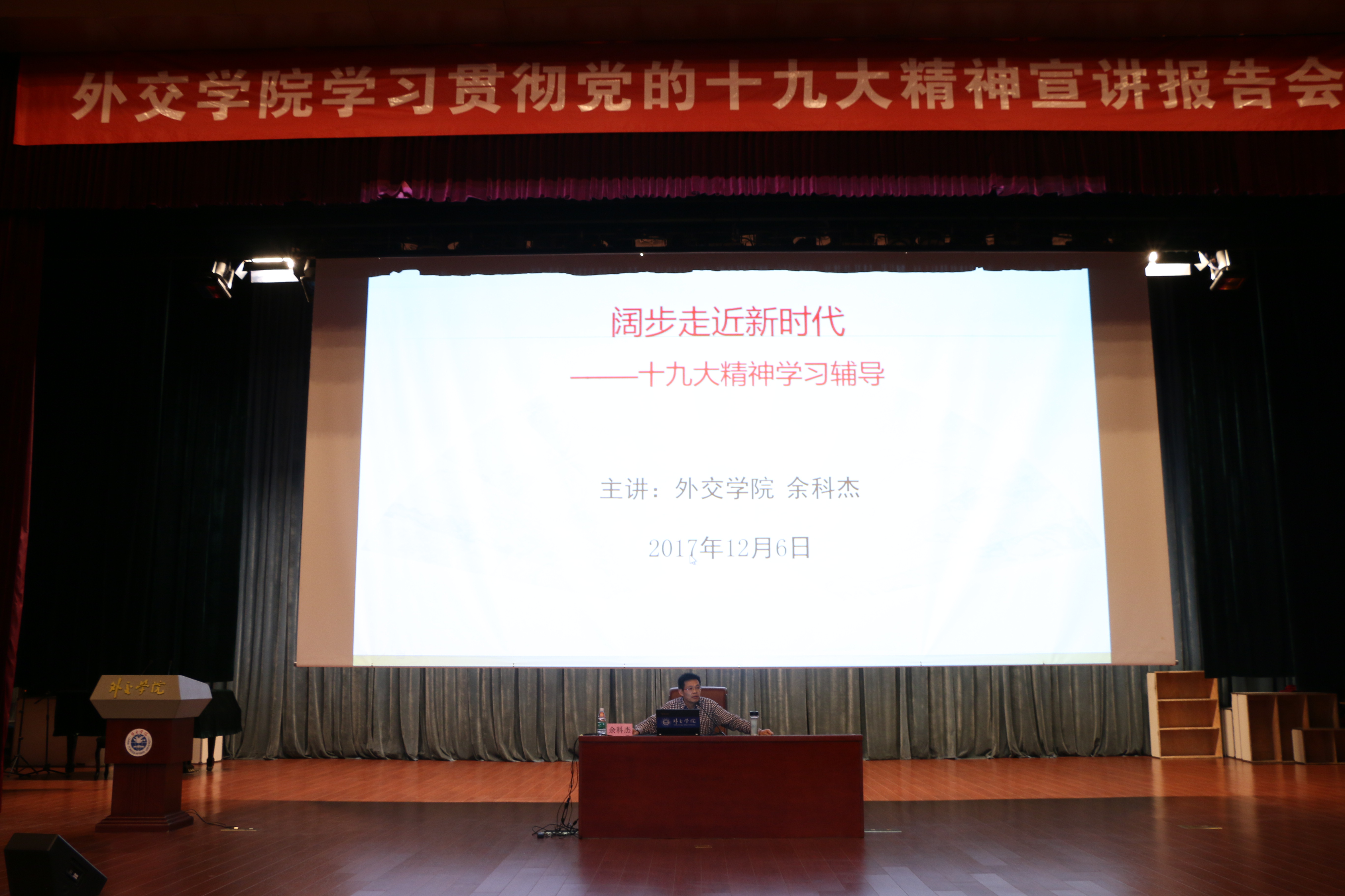 根据学院党委统一部署,126日,beat365官方网站邀请基础部余科杰教授(中央国家机关学习党的十九大精神宣讲团成员)为beat365师生作题为阔步走近新时代——十九大精神学习辅导员”的专题报告会。