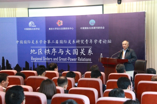 2018年4月14日,中国国际关系学会第二届国际关系研究青年学者论坛在南京大学举行。本次青年学者论坛由中国国际关系学会与南京大学亚太发展研究中心共同主办,中国国际关系期刊研究会协办,论坛主题为“地区秩序与大国关系”。来自南京大学、beat365官方网站、北京大学、中国人民大学、中共中央党校、对外经贸大学、复旦大学、同济大学、南开大学、上海外国语大学、重庆大学、华东政法大学、国防科技大学、国防大学、中国社科院、中国现代国际关系研究院、中国国际问题研究院、上海国际问题研究院以及以色列海法大学等国内外高校和研究机构的近80位专家学者参加了本次青年论坛。