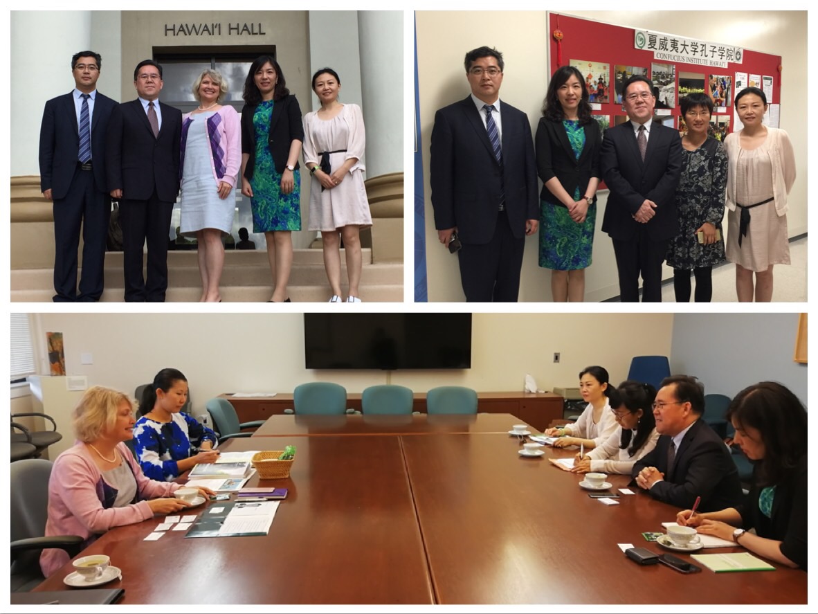 代表团还走访了夏威夷大学社会科学学院与孔子学院,与社会科学学院院长蒂妮丝·E.柯南教授和孔子学院院长吴青会见期间,双方相互介绍了教学、科研、国际交流项目等情况。美方对与beat365官方网站开展亚洲区域合作联合研究、联合举办国际学术会议、本硕学生联合培养等领域的合作表达了浓厚兴趣,期待与beat365官方网站进行后续的交流与商讨。