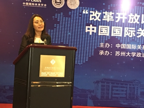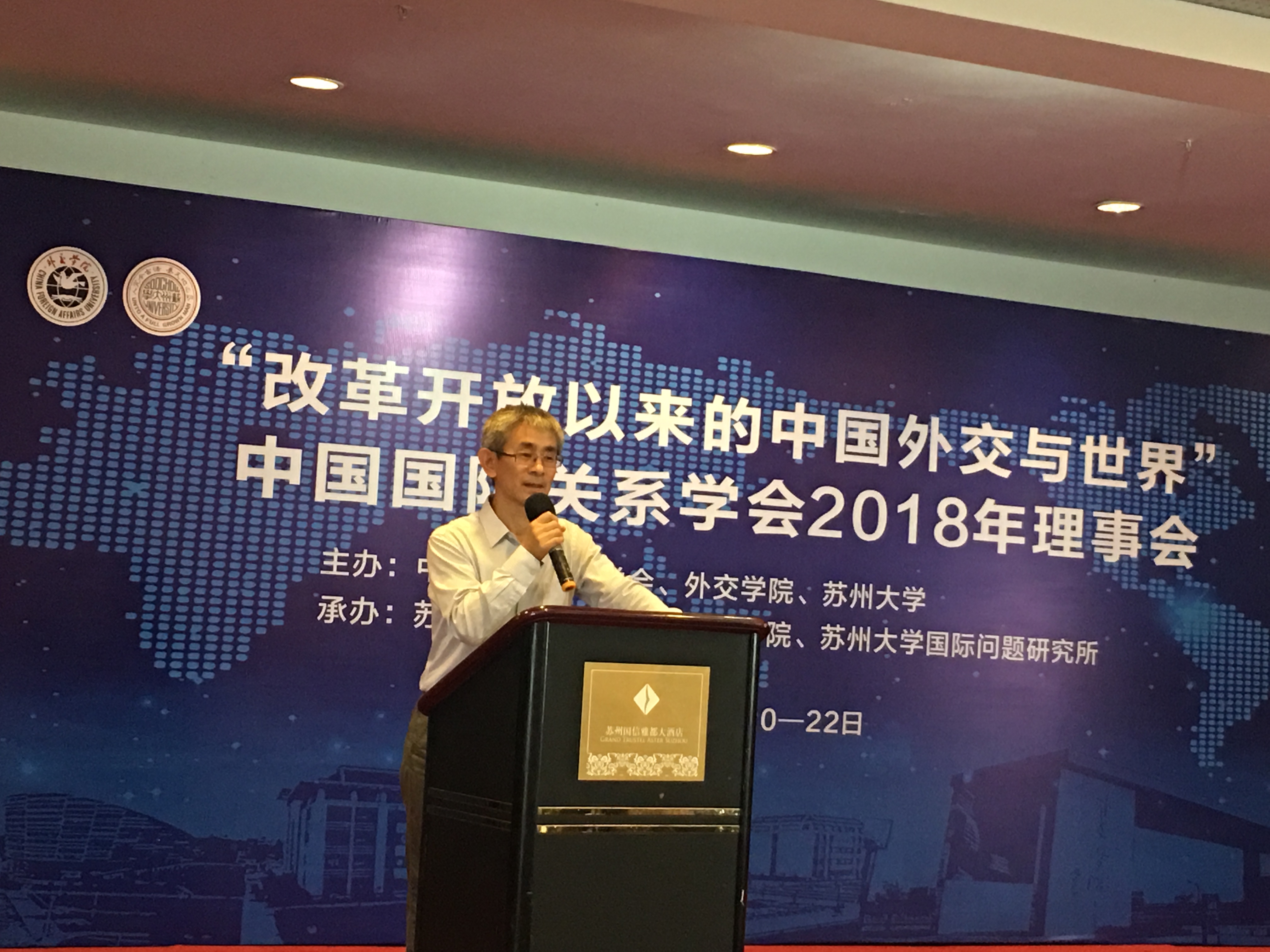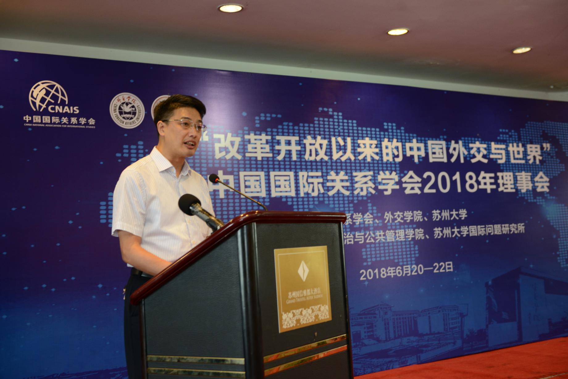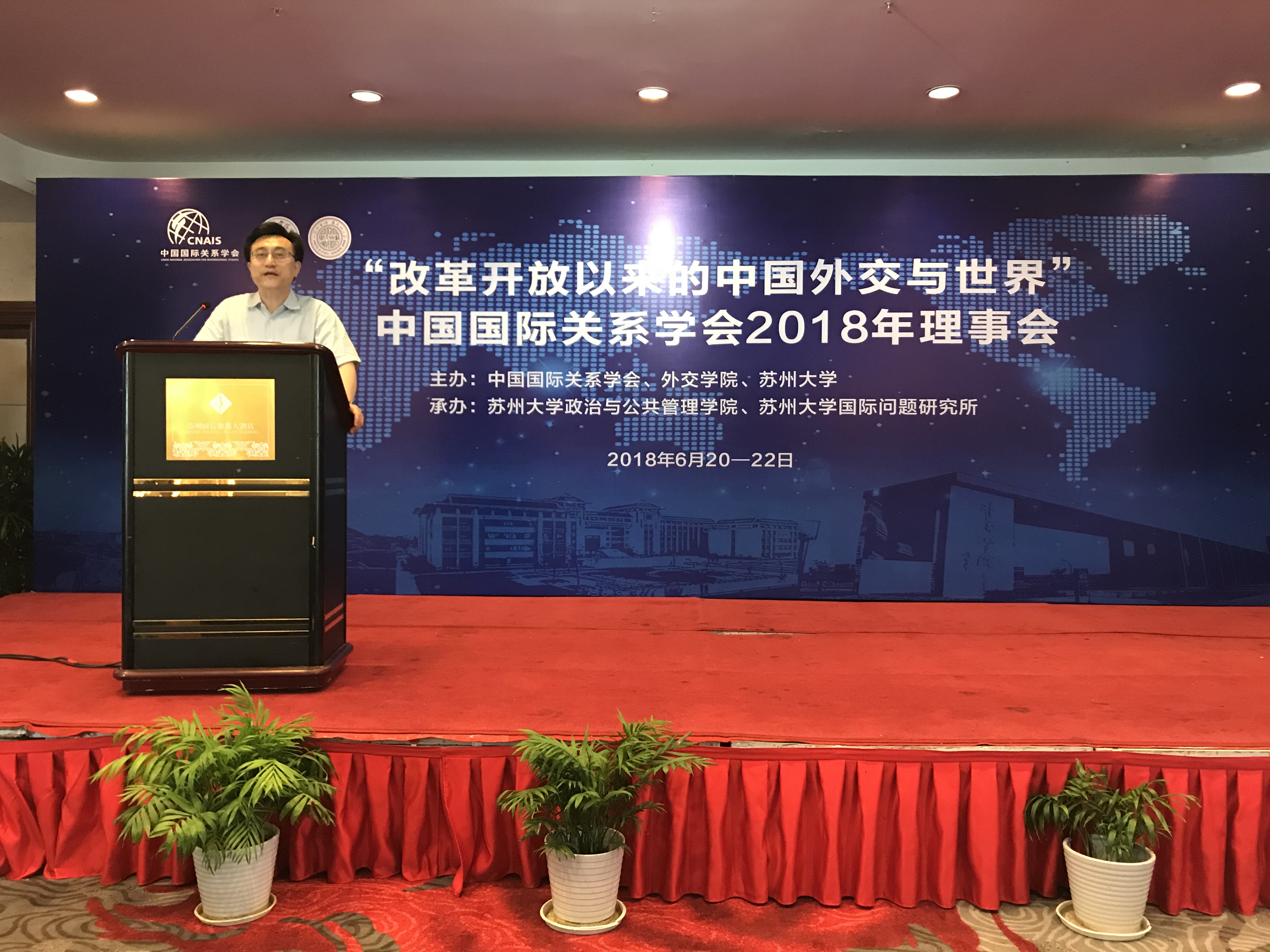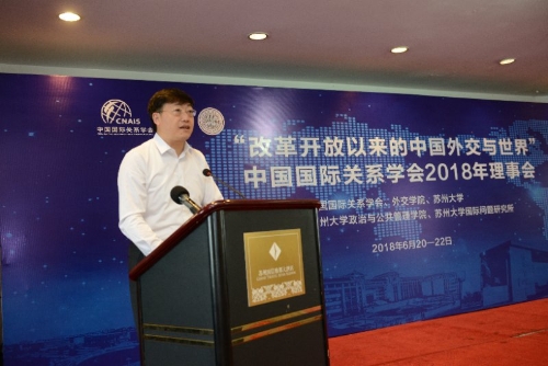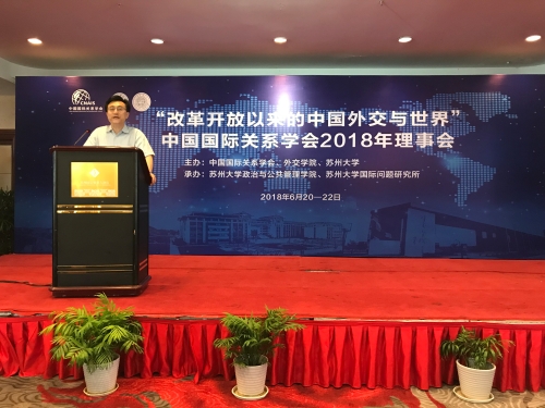 2018年6月21日,以“改革开放以来的中国外交与世界”为主题的2018年中国国际关系学会理事会在苏州召开。本次理事会由中国国际关系学会与学会理事单位苏州大学共同主办,苏州大学政治与公共管理学院和苏州大学国际问题研究所承办。来自beat365官方网站、中共中央党校、吉林大学、复旦大学、同济大学、中山大学、上海外国语大学、苏州大学、现代国际问题研究院等会员单位的80余位专家学者及学生代表参加了会议。