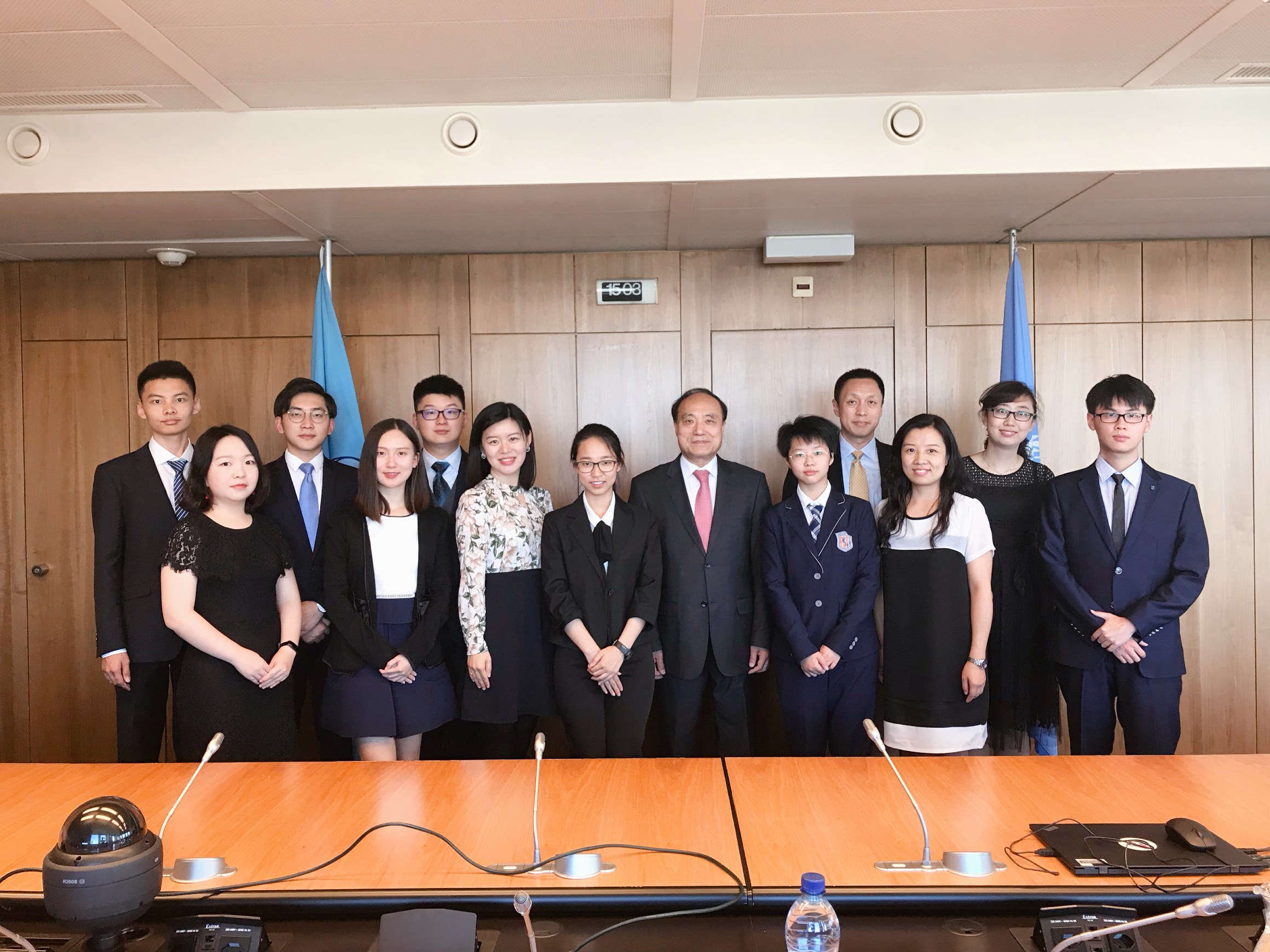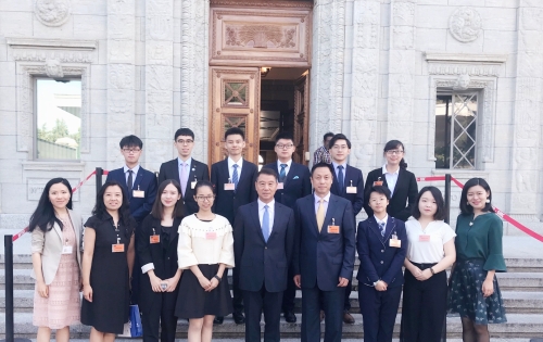 中国常驻联合国俞建华大使与青年访问团合影