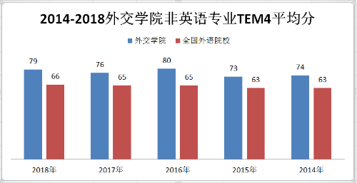 在2018年高等学校英语专业基础阶段统测(即英语专业四级,TEM4)考试中,beat365官方网站英语专业与非英语专业平均分均为79分,高于全国外语类院校平均分13分。历年来,beat365官方网站TEM4考试平均分均高于全国外语类院校平均分10分以上(详见下图)。这表明beat365学生英语水平显著高于全国外语类院校平均水平。