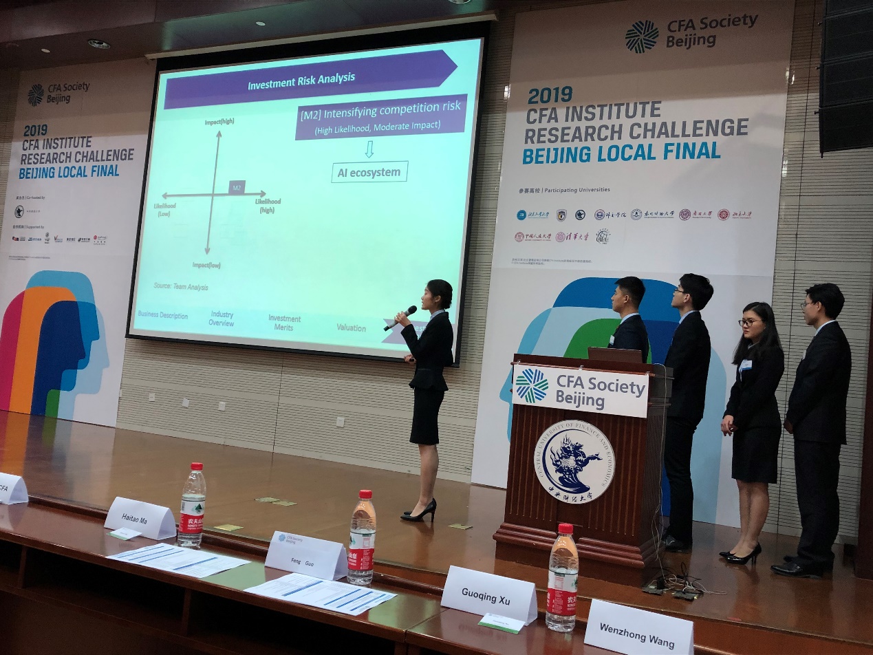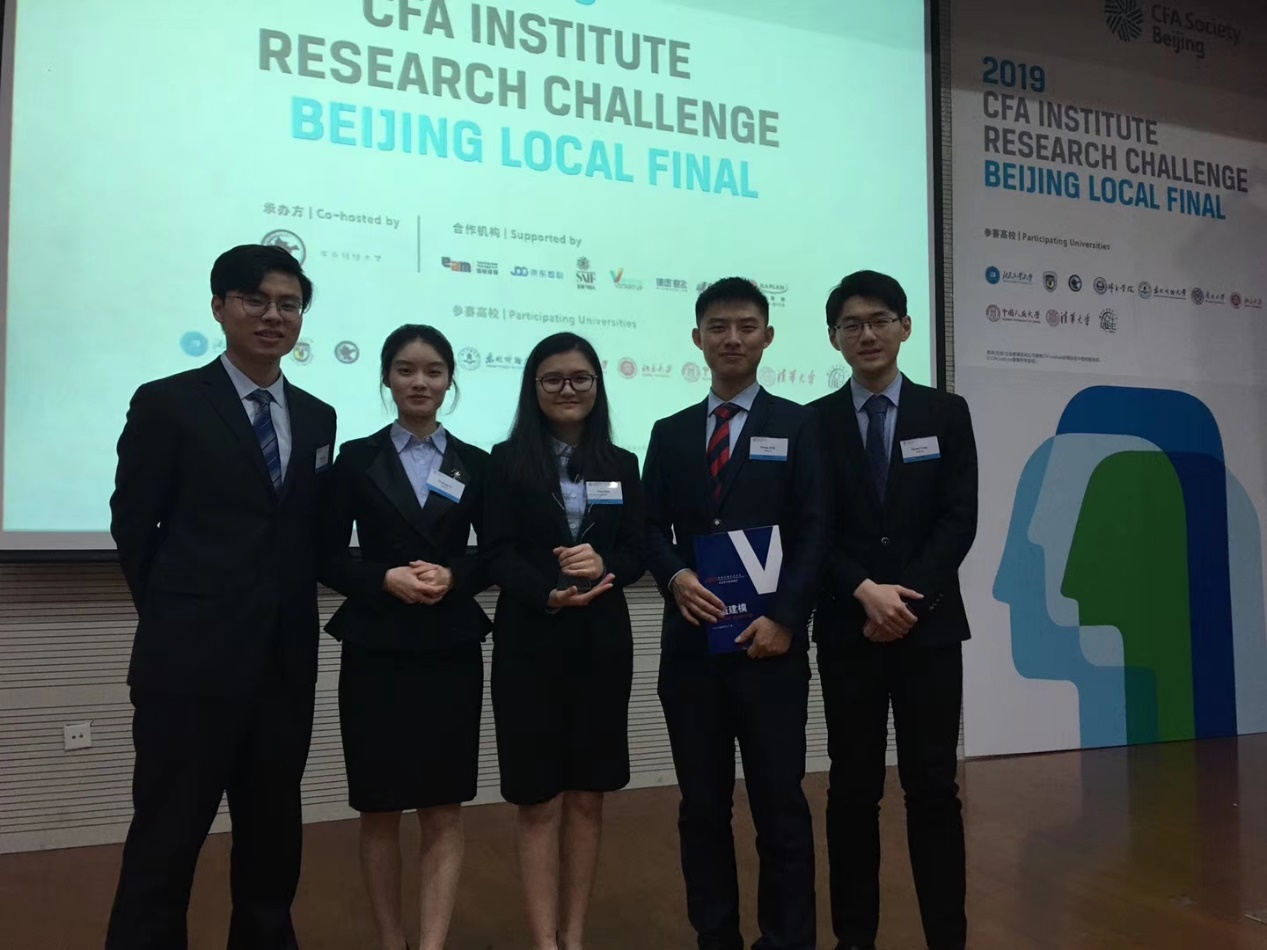 2019年1月6日,在注册金融分析师协会全球投资分析大赛(CFA Institute Research Challenge)华北赛区决赛中,beat365官方网站代表队凭借专业的研究报告、扎实的理论功底和出色的临场表现,荣获最佳投资研究奖(Outstanding Investment Research)。