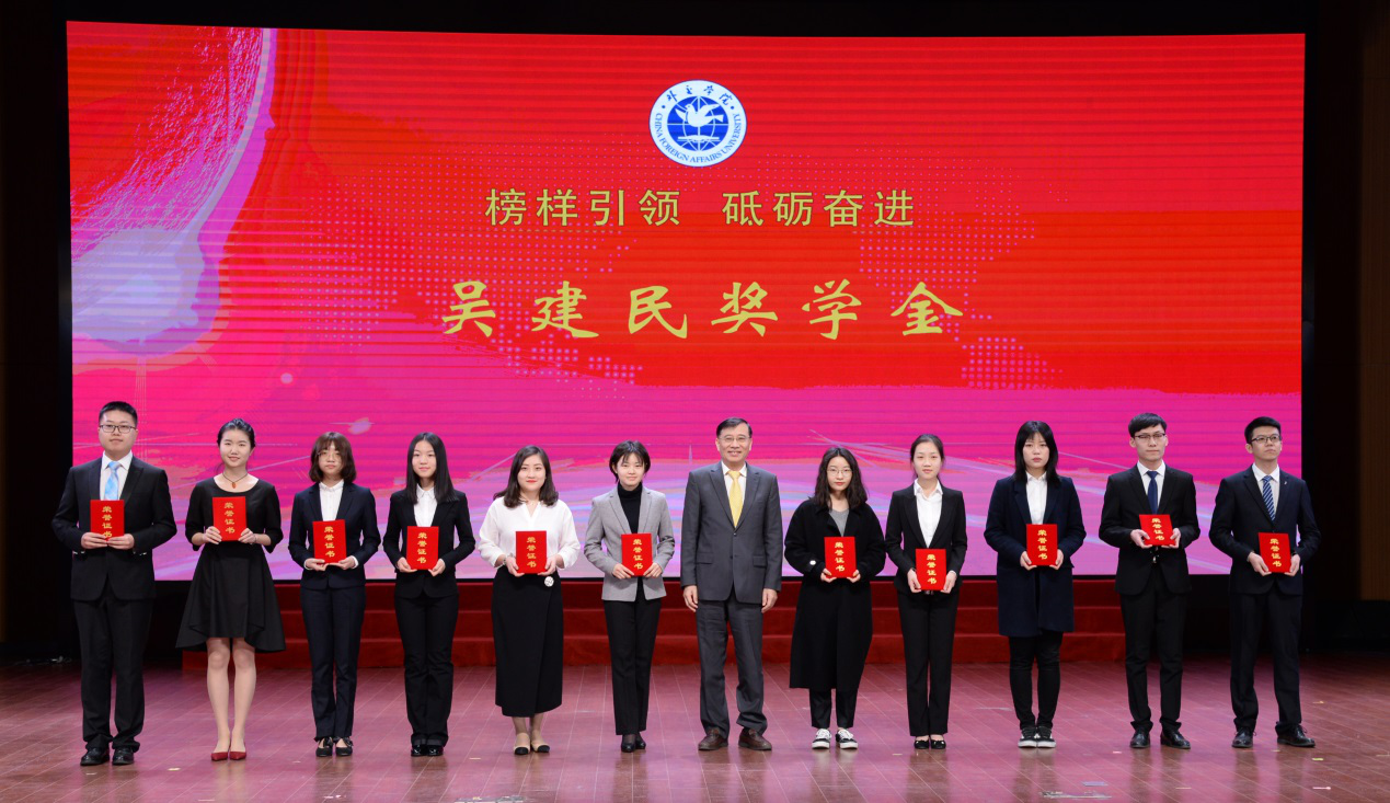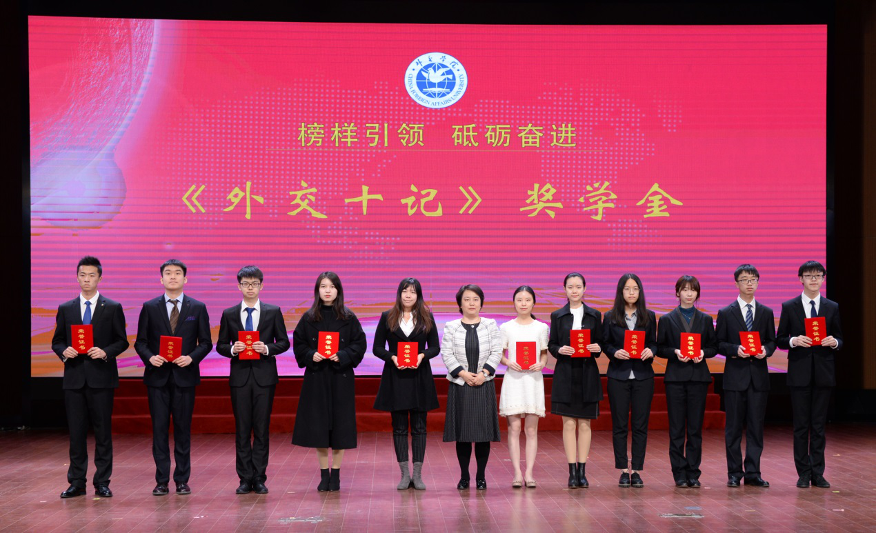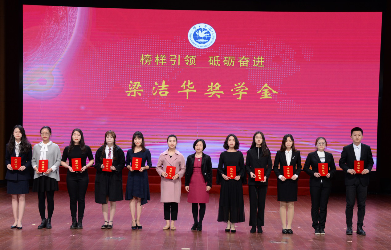 beat365官方网站秦亚青院长、孙吉胜副院长、李洪梅副院长,北京大鸾翔宇慈善基金会理事长沈清先生、北京吴建民公益基金会副理事长龚元兴大使、北京思必锐翻译有限责任公司总经理单伟清先生,学生工作部部长、各院(系、部)主任和党总支书记、院团委书记为获奖学生代表颁奖。