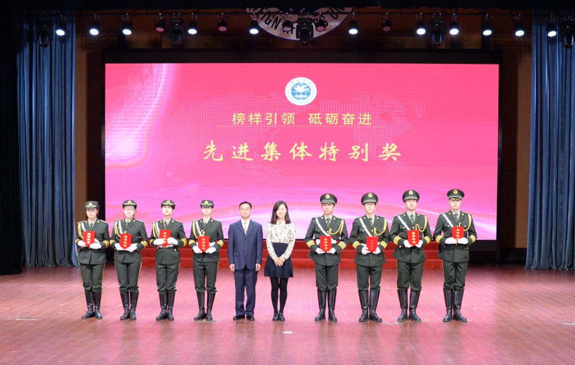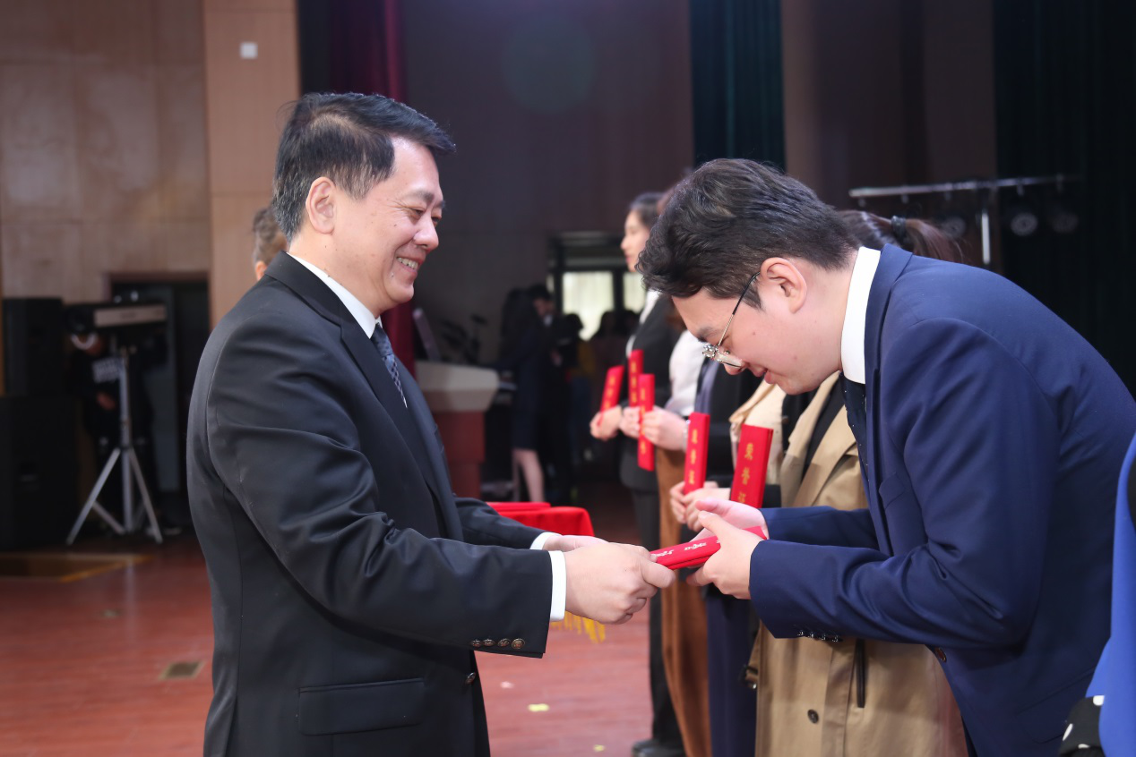 学生工作部(处)部(处)长王胜乾、院团委书记王华迪为先进集体特别奖获奖代表颁发荣誉证书