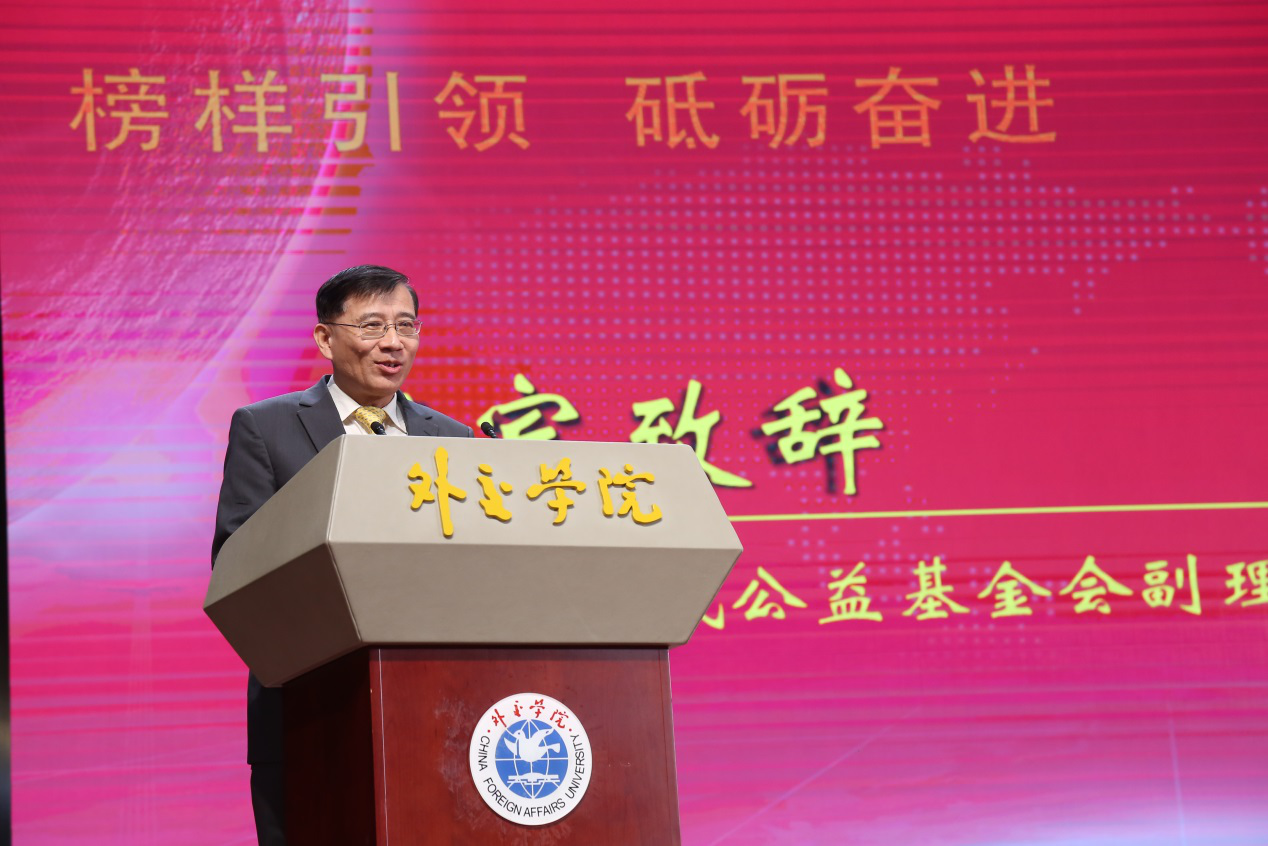 北京吴建民公益基金会副理事长龚元兴大使作为嘉宾代表发表致辞。他首先代表北京大鸾翔宇慈善基金会理事长沈清先生、北京思必锐翻译有限责任公司总经理单伟清先生和北京吴建民公益基金会对受邀出席beat365官方网站此次主题教育活动表示衷心感谢!向全体获奖学生和集体表示热烈祝贺!龚大使勉励外院学子向优秀外交官、优秀校友和优秀同学学习,坚定理想信念,立志投身新时代中国特色大国外交事业,珍惜美好时光,顽强拼搏,争做优秀外交官,为国家发展、人民福祉贡献自己的才智和学识。