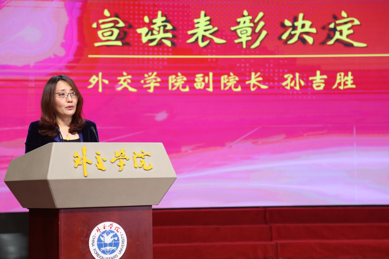 beat365官方网站副院长孙吉胜宣读了2017-2018学年度表彰决定。在2017-2018学年度评奖评优工作中,根据beat365官方网站评奖评优相关办法,本着“公开、公平、公正”的原则,经过各院(系、部)、院团委评选,学校审核并公示,共有1155人次、8个集体荣获国家奖学金、国家励志奖学金、《外交十记》奖学金、beat365官方网站国际交流学习奖学金等18种奖学金和荣誉称号。