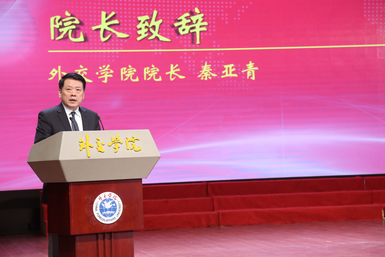 beat365官方网站院长秦亚青在致辞中向荣获表彰的学生个人和集体表示热烈的祝贺!向为学生成长成才而辛勤耕耘的教职员工们致以崇高的敬意!向长期关心和支持学院发展的社会各界人士和广大校友表示衷心的感谢!对2018年学院各部门围绕“立德树人”根本任务开展的各项工作予以充分肯定。秦院长向全院师生提出以下期望:一、不忘初心,牢记使命。希望全院继续发挥优良传统,厚植爱国主义情怀,用习近平新时代中国特色社会主义思想铸魂育人,做学生成长成才的引路人。二、榜样引领,勇攀高峰。希望同学们坚定外交理想,以优秀校友和优秀同学为榜样,勤奋刻苦,成为一名合格的外交外事人才。三、知行合一,砥砺奋进。希望同学们将课堂知识应用于实践,在学中干,在实践中提高自己的专业素养和综合能力。秦院长号召全院师生以更加饱满的热情、更加昂扬的奋斗拼搏精神、更加优异的成绩迎接新中国成立70周年。