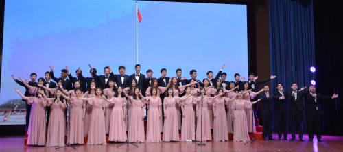 在颁奖典礼过程中,学院合唱团以快闪的方式演唱了《我和我的祖国》,极具感染力的表演掀起了现场的小高潮,也激发了同学们的家国情怀和爱国之情,感恩祖国的繁荣昌盛、文明富强。