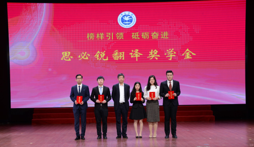 北京思必锐翻译有限责任公司总经理单伟清为“思必锐翻译”奖学金获奖代表颁发荣誉证书