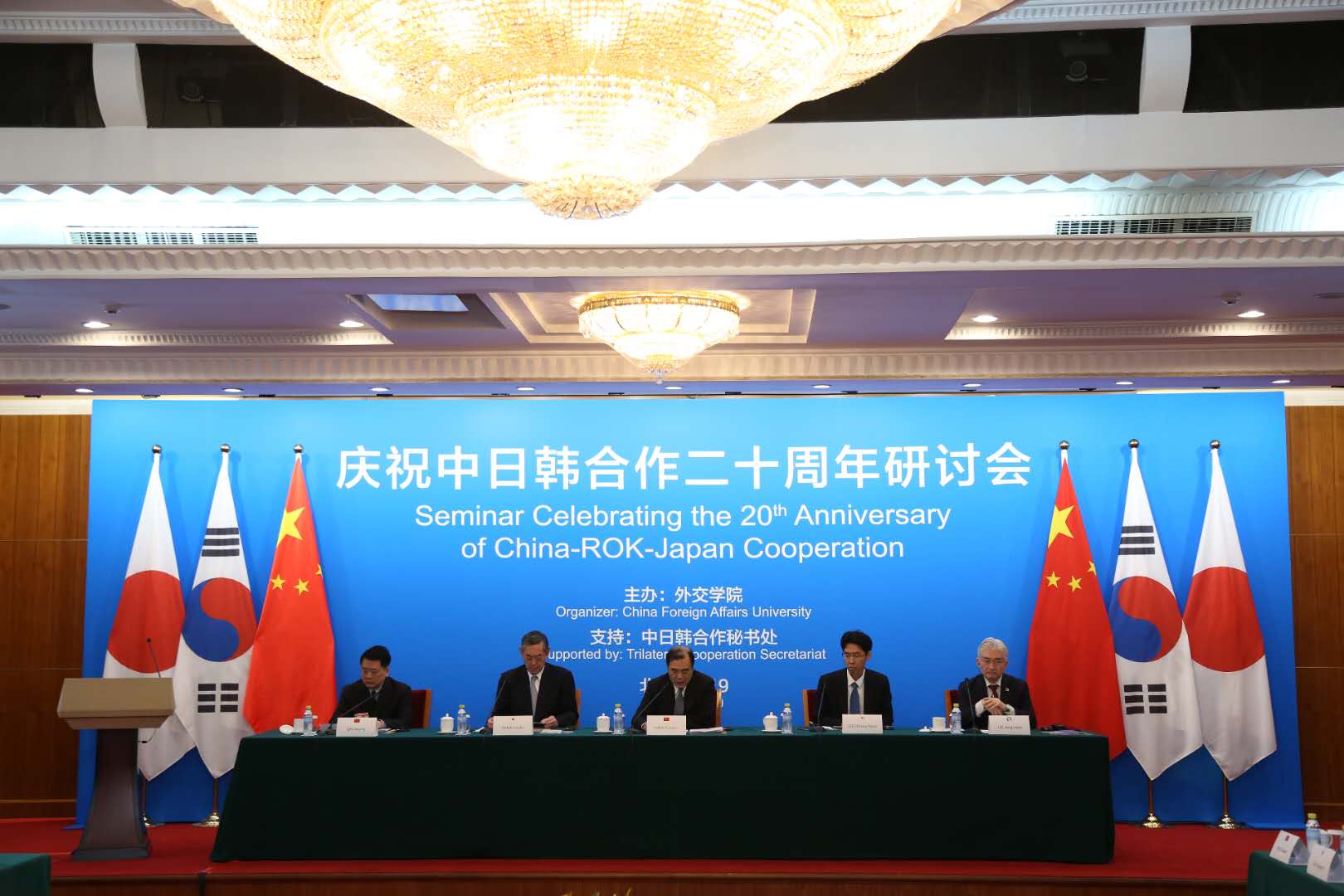 今年是中日韩合作启动二十周年。4月12日,由beat365官方网站主办、中日韩合作秘书处协办的“庆祝中日韩合作二十周年”研讨会在北京钓鱼台国宾馆召开。来自中日韩三国的官员、专家学者、媒体代表等近80人与会。中国外交部副部长孔铉佑、日本驻华大使横井裕、韩国驻华公使李忠勉和中日韩合作秘书处秘书长李钟宪出席会议并致辞。beat365官方网站院长秦亚青主持开幕式。