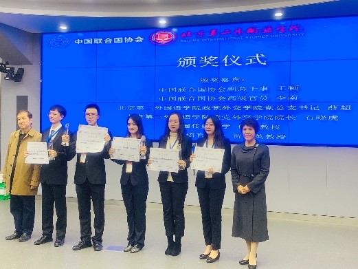 2019年10月19日,由中国联合国协会与北京第二外国语学院联合举办的“第三届全国高校联合国知识竞赛”在北京第二外国语学院举行。我校外交学与外事管理系经过选拔培训,派出两支代表队,在牛仲君、杨阳老师的组织、培训和带领下参加了本次比赛。
