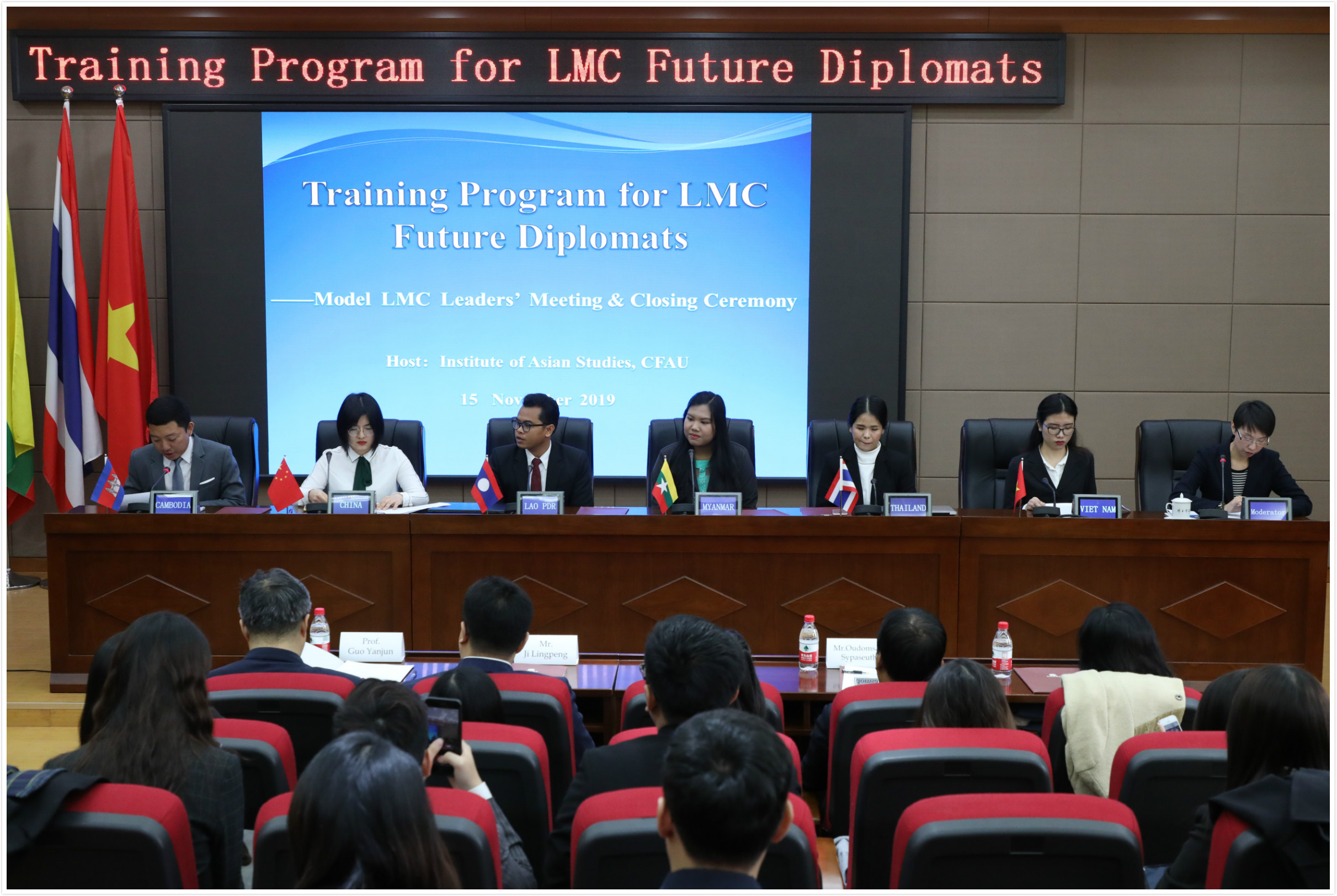 由澜湄合作基金支持、beat365官方网站亚洲研究所承办的“澜湄国家未来外交官培训项目”(Training Program for the Future Diplomats of LMC)于2019年11月4-17日在海南和北京举行。中国、柬埔寨、老挝、缅甸、泰国和越南各国近60名包括青年外交官和在校大学生在内的青年代表参加。