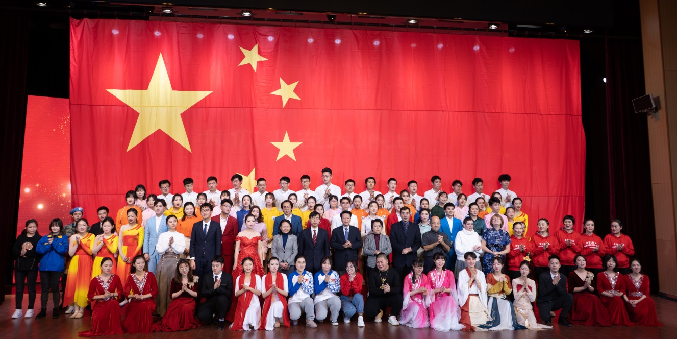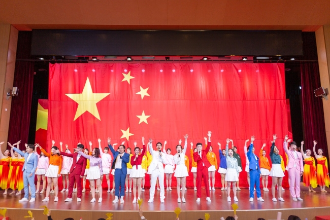 “再出发”篇章,教工健美操队用活力四射的舞步表现出《国旗下的追梦人》昂扬向上的精神风貌;《夜空中最亮的星》向观众娓娓道来外院师生在打赢脱贫攻坚战上做出的努力;最后一曲青春活泼、积极向上的师生合唱《红旗飘飘》充分展现beat365师生为祖国外交事业贡献青春力量的信心和决心。歌声中,一面巨型五星红旗从观众席铺向舞台,并在台上升起,将本次文艺演出推向高潮。最后,全场齐唱《我们走在大路上》,整场演出圆满落下帷幕。