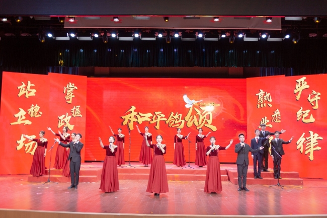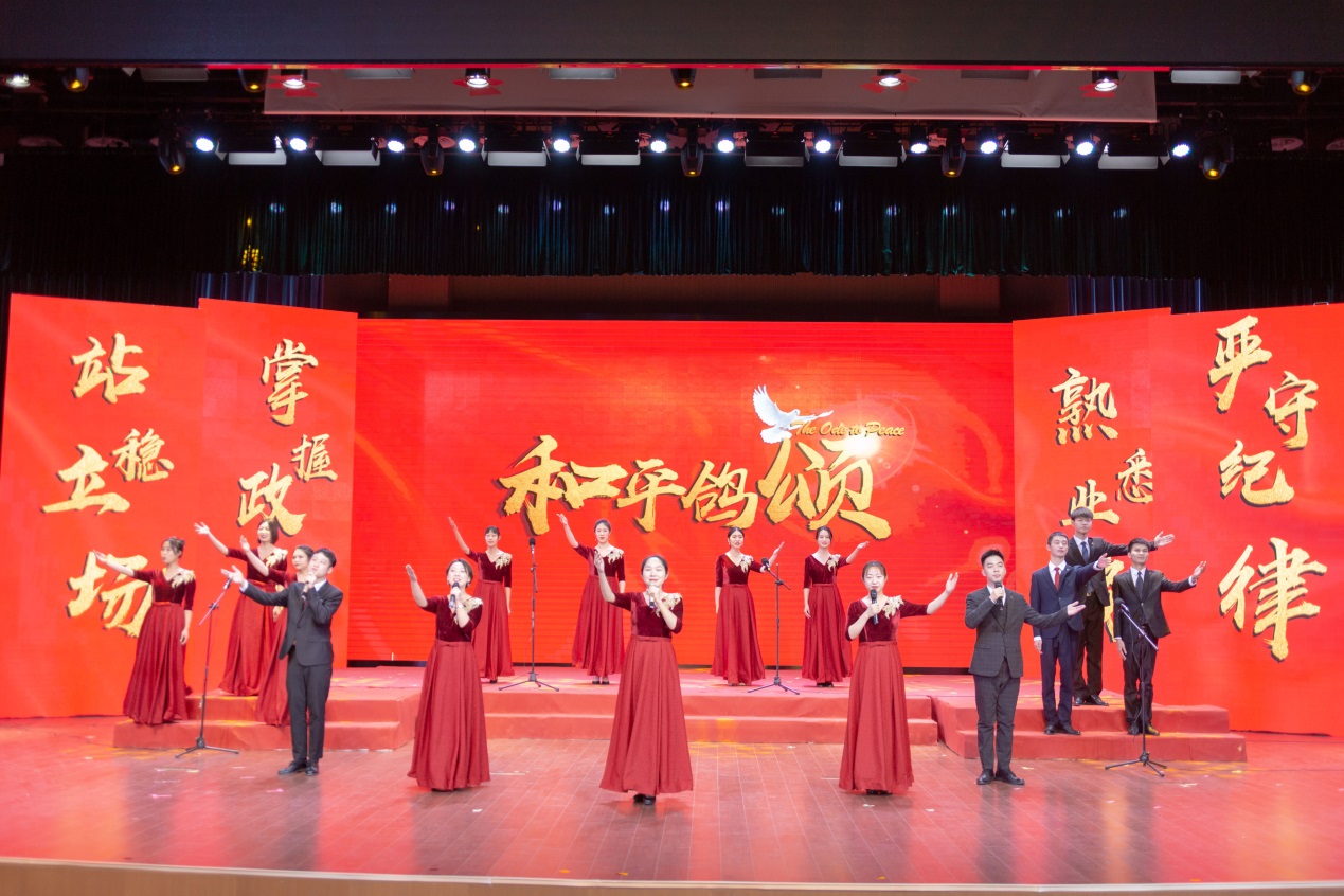 “共奋进”篇章中,校艺术团舞蹈队的同学们用《绒花》优美的舞姿表达了对新中国英雄们的崇高敬意;戏剧社的同学们用话剧《国家》向中国外交官、中国维和部队官兵以及所有为世界和平做出贡献的英雄们致敬;液体音乐社改编的《我爱你中国》唱出了beat365莘莘学子对祖国母亲的真挚感情。