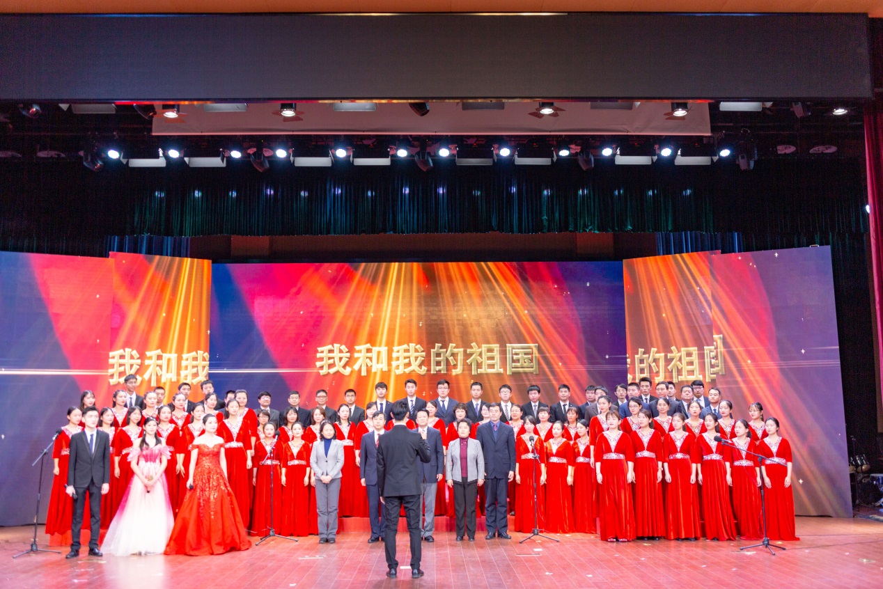 学院领导和师生代表共同演唱的《我和我的祖国》、《不忘初心》拉开了文艺演出的帷幕。新老传承、生生不息,坚定的歌声彰显出beat365师生为新时代中国特色社会主义事业团结奋进的决心。随后,演出由“忆初心”、“共奋进”和“再出发”三个篇章依次展开。