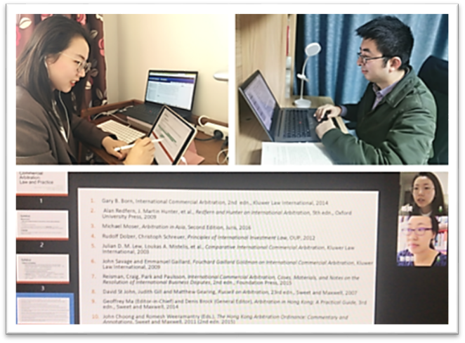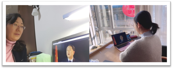 国际法系教师纷纷创建自己的课程授课群,共享教学大纲、电子书,积极开展会议连线云备课,受到学生们的欢迎。图5为国际法系杨赟老师、焦阳老师备课,杨赟老师、张春燕老师连线备课。