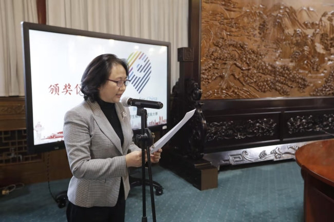 北京市政协党组副书记、副主席杨艺文颁发一等奖