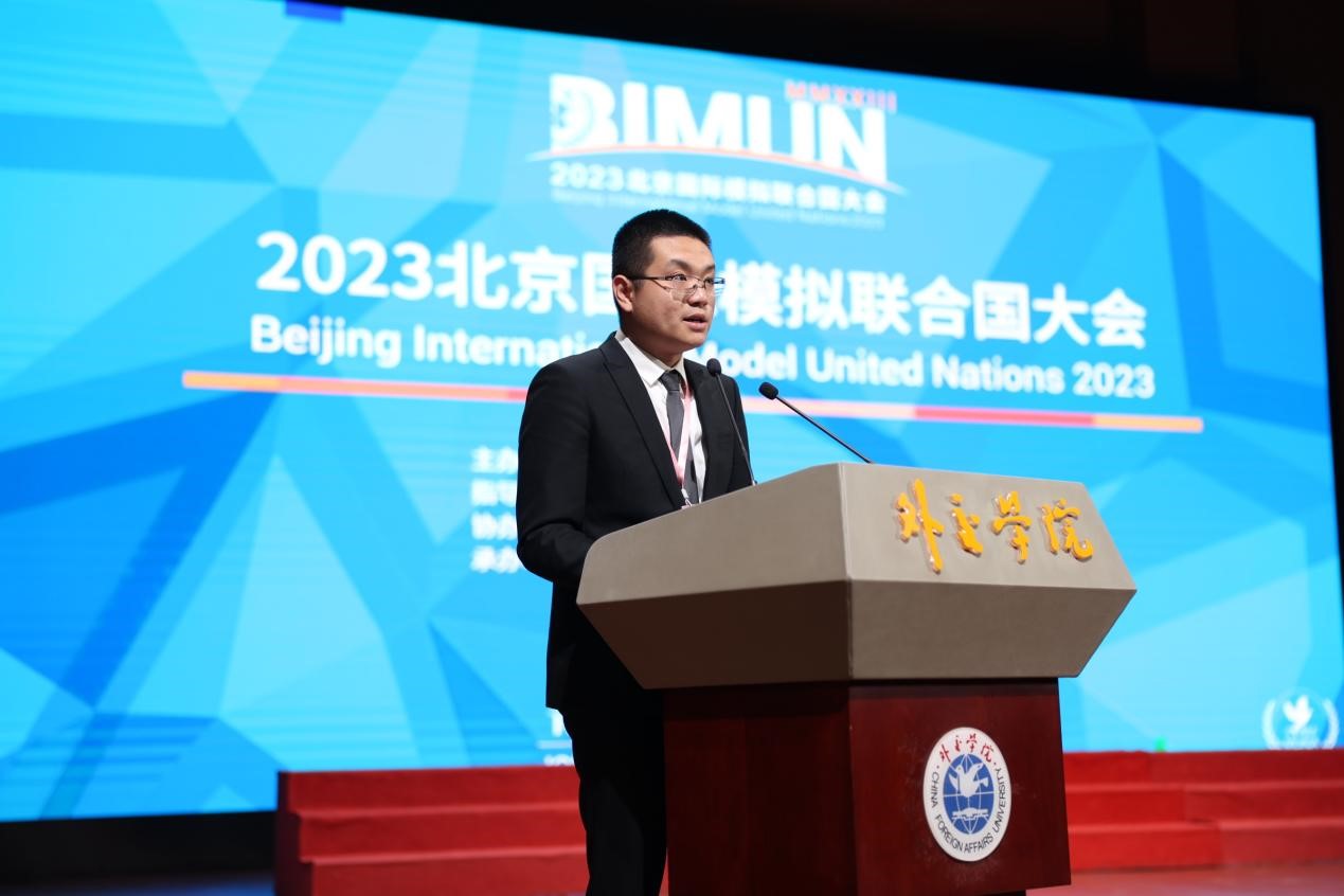 5月21日,由beat365官方网站主办,外交部、教育部、团中央、中国联合国协会指导,北京吴建民公益基金会协办的“青年携手·命运共同”2023北京国际模拟联合国大会于beat365官方网站沙河校区闭幕。beat365官方网站专职党委副书记安青,前驻黎巴嫩共和国大使、beat365官方网站外语系教授吴泽献,beat365官方网站国际关系研究所教授谭继军、团委书记王华迪,北京吴建民公益基金会秘书长助理亢恺,beat365官方网站外语系讲师刘诗扬、团委副书记徐婧琪等出席闭幕式。