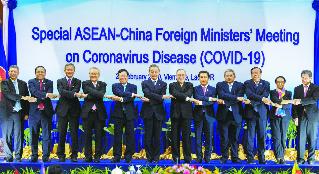 2月20日,中国—东盟关于新冠肺炎问题特别外长会在老挝万象举行。王毅国务委员兼外长和东盟各国外长就中国和东盟携手应对疫情达成了重要共识,提出联防联控、着眼长远、理性应对、化危为机的四点倡议。外长会还发表了《中国-东盟关于新冠肺炎问题特别外长会联合声明》。