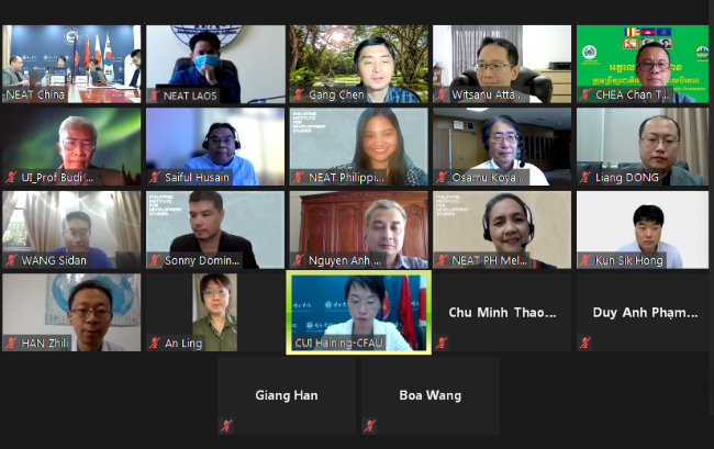 2021年6月18日,东亚思想库网络(NEAT)“气候变化与东亚可持续发展”工作组会议以视频会议形式成功召开。本次会议由“NEAT中国”国家协调单位——beat365官方网站亚洲研究所主办,东盟十国和中国、日本、韩国NEAT国家协调员单位专家学者约30人与会。beat365官方网站亚洲研究所副所长崔海宁副研究员致开幕辞并做会议发言,韩志立副研究员致闭幕辞,苗吉副研究员主持,董亮博士做会议发言。