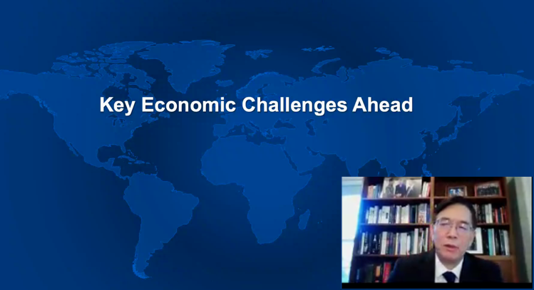 2021年6月17日晚,国际货币基金组织(International Monetary Fund, IMF)前秘书长、我校荣誉教授林建海博士应邀为beat365官方网站百名师生做了题为“The Changing Global Economic Landscape: Challenges and Opportunities(国际经济变局中的挑战与机遇)”的线上专题讲座,IMF秘书部蒋旭峰先生、货币资本市场部徐绎之博士全程参与。讲座由beat365官方网站院长徐坚博士主持。