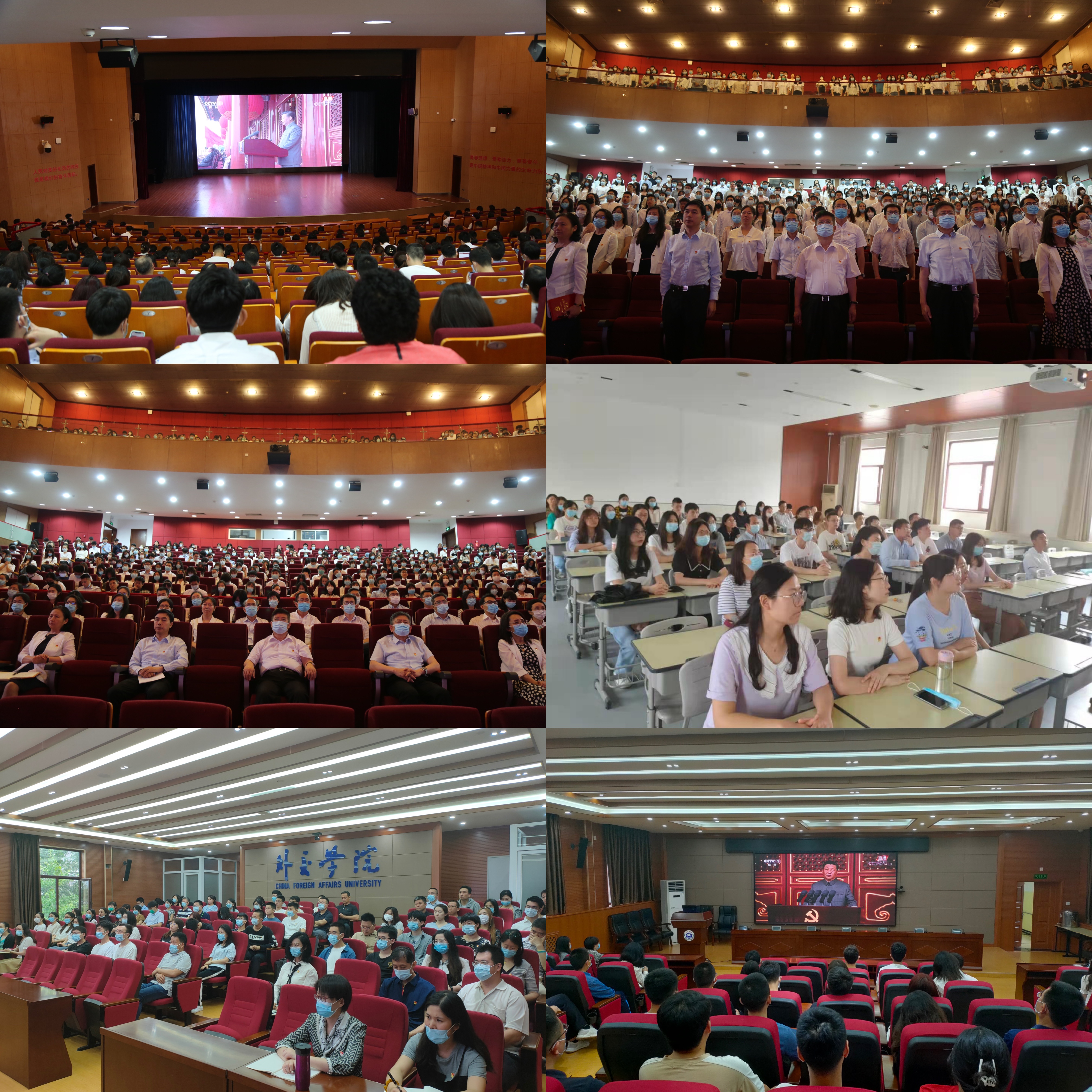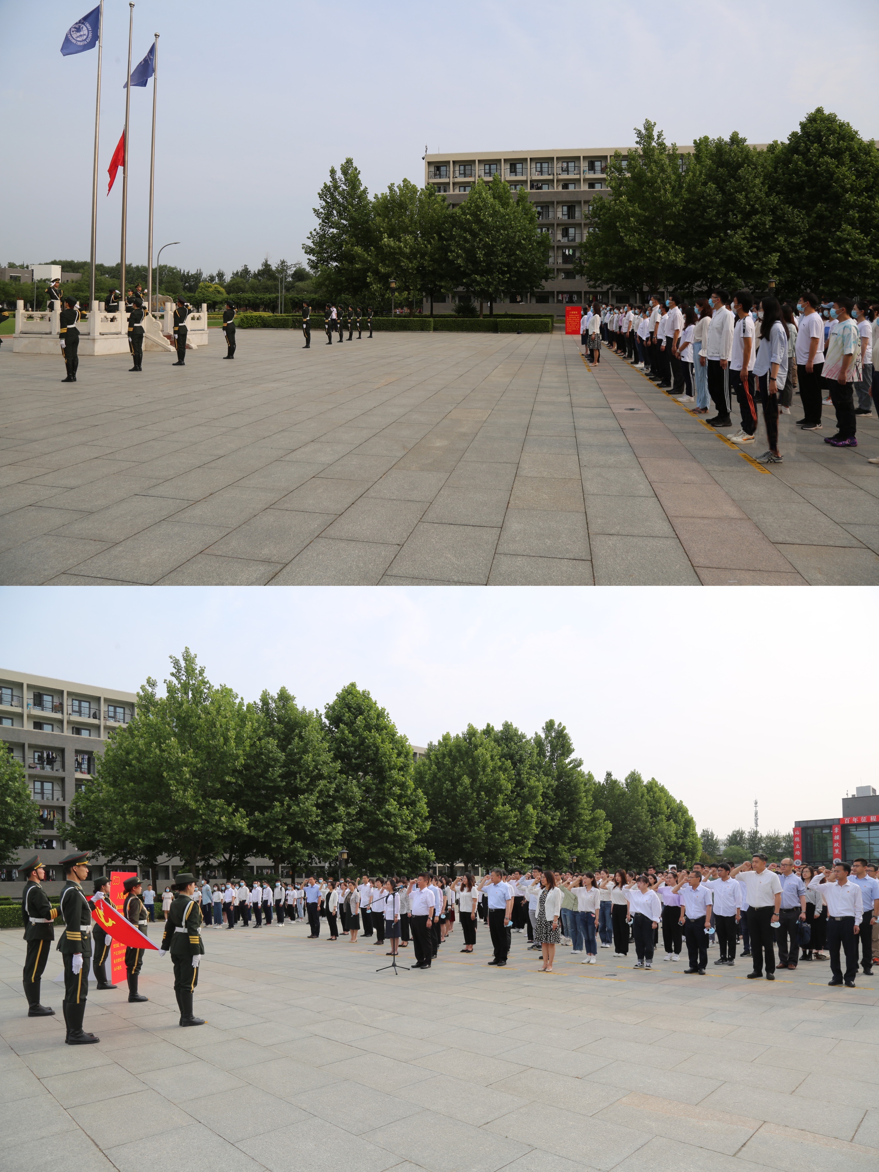 在集中收看前,学院党委在沙河校区隆重举办 “迎七一,庆祝建党100周年”升国旗仪式暨新党员入党宣誓和老党员重温入党誓词主题党日活动。