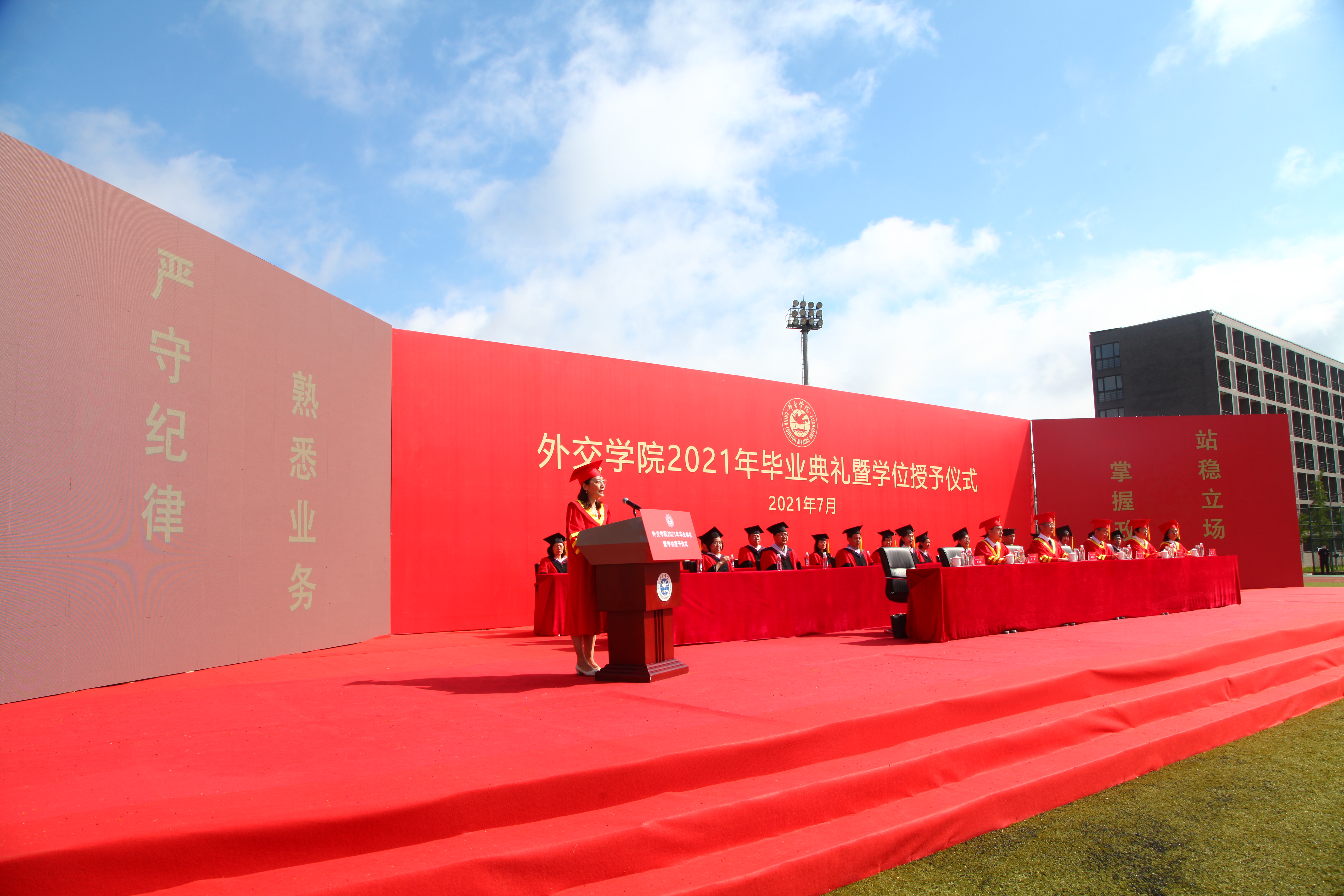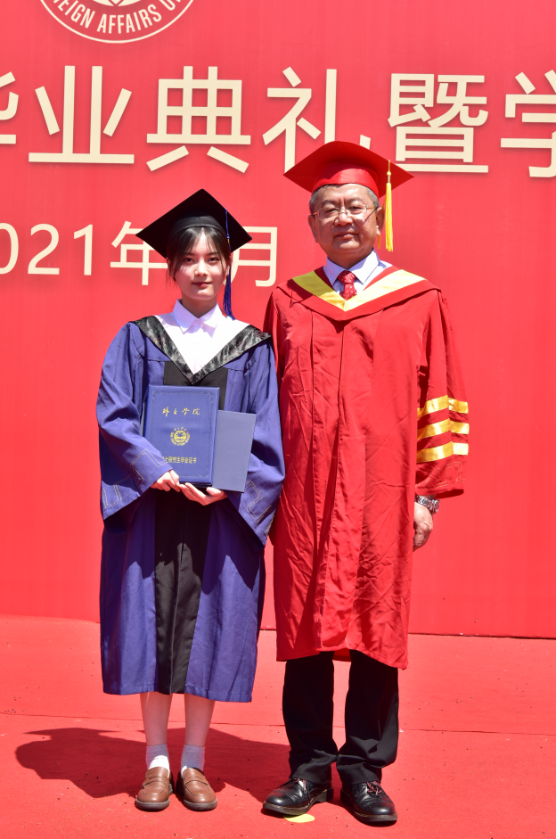 国际法系唐靖同学作为本科生毕业生代表发言。唐靖同学代表全体本科生毕业生向母校、老师们、家长们和同学们表达了深深的感激之情。表示作为一名外院学子、将来的外院校友,更作为一名新时代青年,我们要谨遵校训精神,牢记习总书记的教诲,立大志、明大德、成大才、担大任,在奋斗中释放青春激情、追逐青春理想,以青春之我、奋斗之我,为中华民族伟大复兴铺路架桥,为祖国建设添砖加瓦。